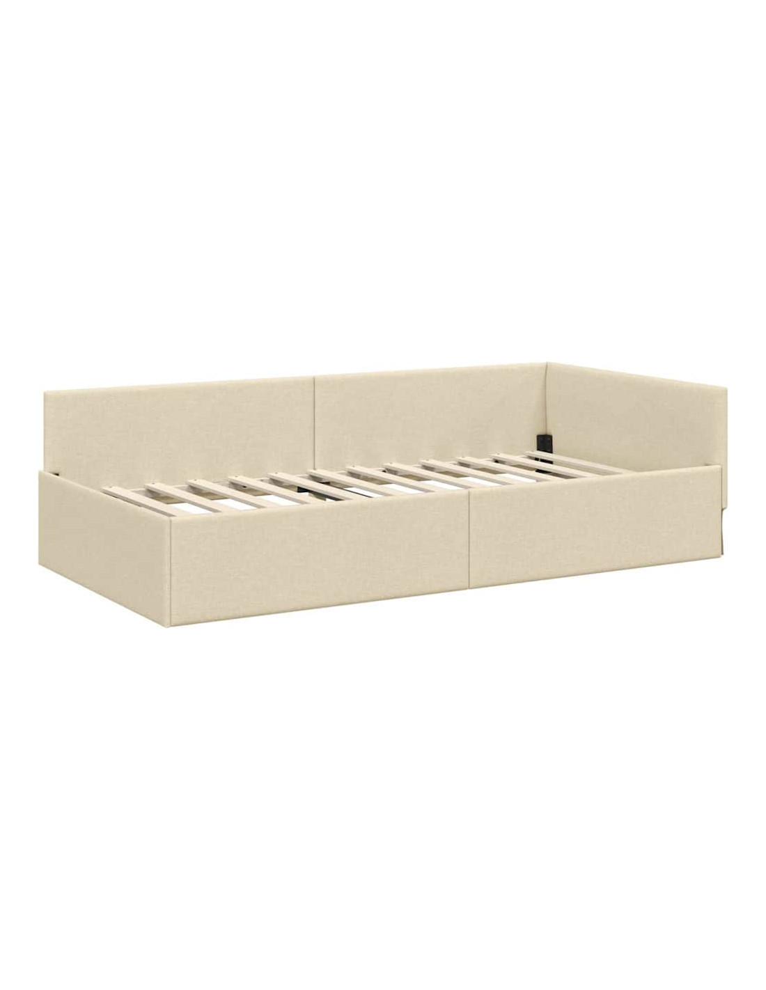 - Componenti Inclusi: Il design angolare include una testiera rivestita in robusto tessuto di poliestere, che aggiunge bellezza e comfort. Il telaio a doghe è in legno o metallo, offrendo supporto solido per i materassi, mantenendoli comodi più a lungo.