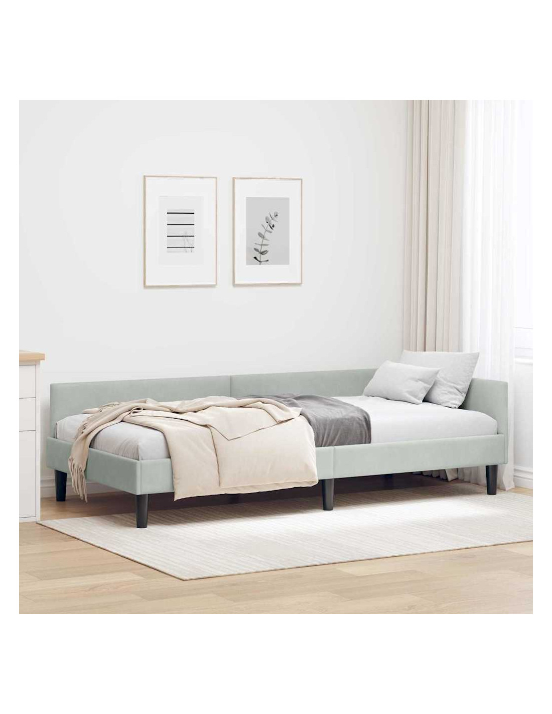 Questa struttura letto angolare in tessuto unisce eleganza moderna e praticità, ed è una scelta top per qualsiasi camera da letto. La sua forma rettangolare semplice e le linee pulite si adattano perfettamente ai design di oggi. La finitura morbida è accogliente e la testiera blu in poliestere aggiunge un tocco vivace che migliora comfort e stile. Perfetta per case moderne, il suo design comunica semplicità e utilità, fondendosi alla grande con vari arredi e spazi.