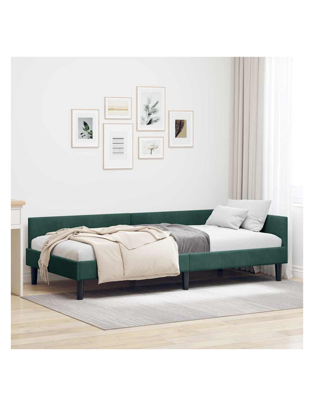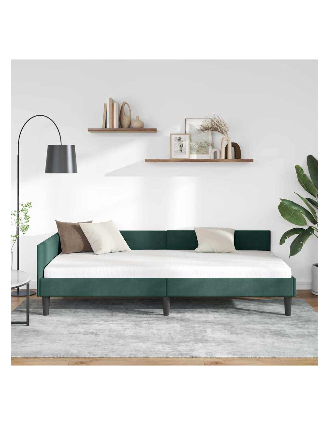 Questa struttura letto angolare in tessuto unisce eleganza moderna e praticità, ed è una scelta top per qualsiasi camera da letto. La sua forma rettangolare semplice e le linee pulite si adattano perfettamente ai design di oggi. La finitura morbida è accogliente e la testiera blu in poliestere aggiunge un tocco vivace che migliora comfort e stile. Perfetta per case moderne, il suo design comunica semplicità e utilità, fondendosi alla grande con vari arredi e spazi.