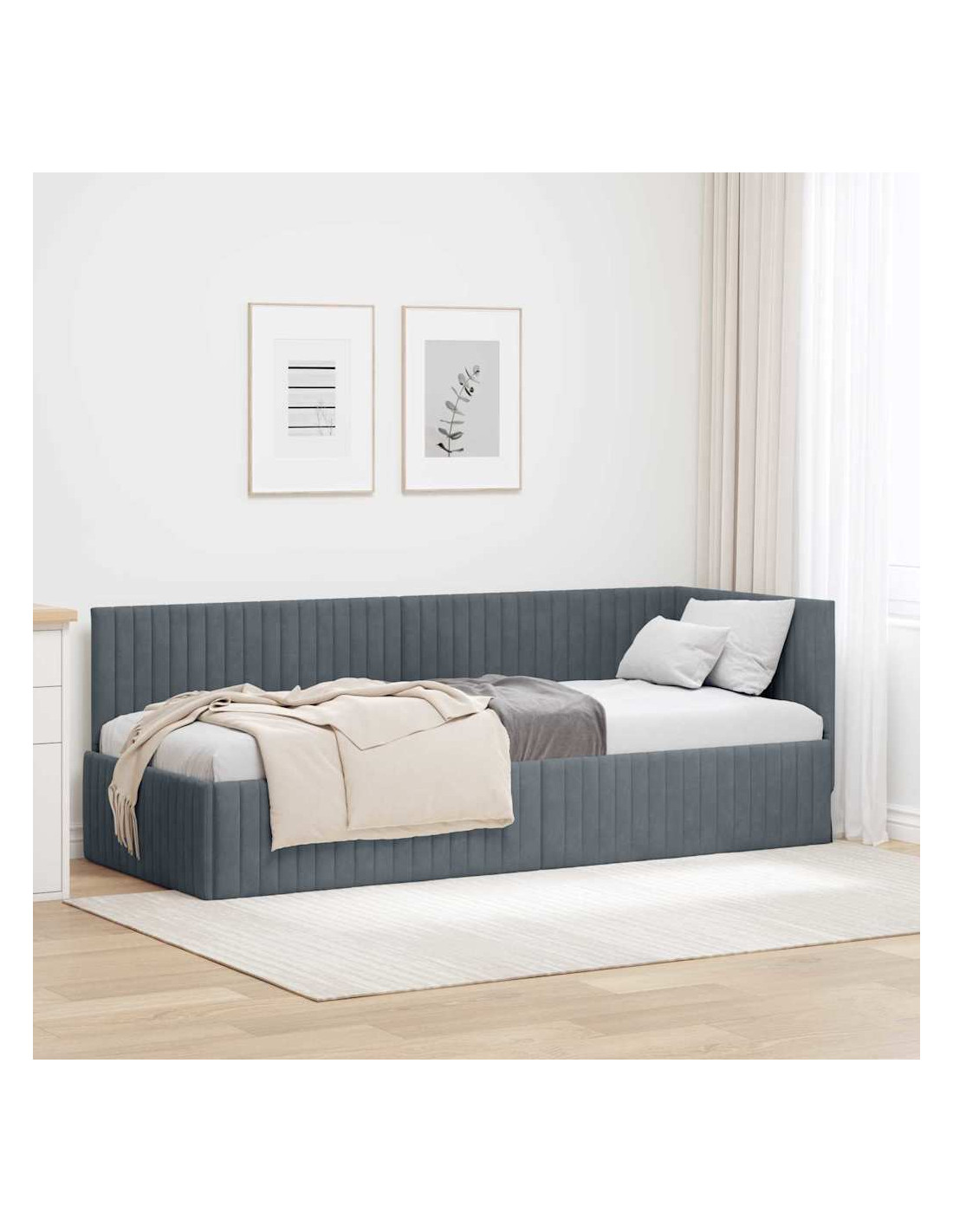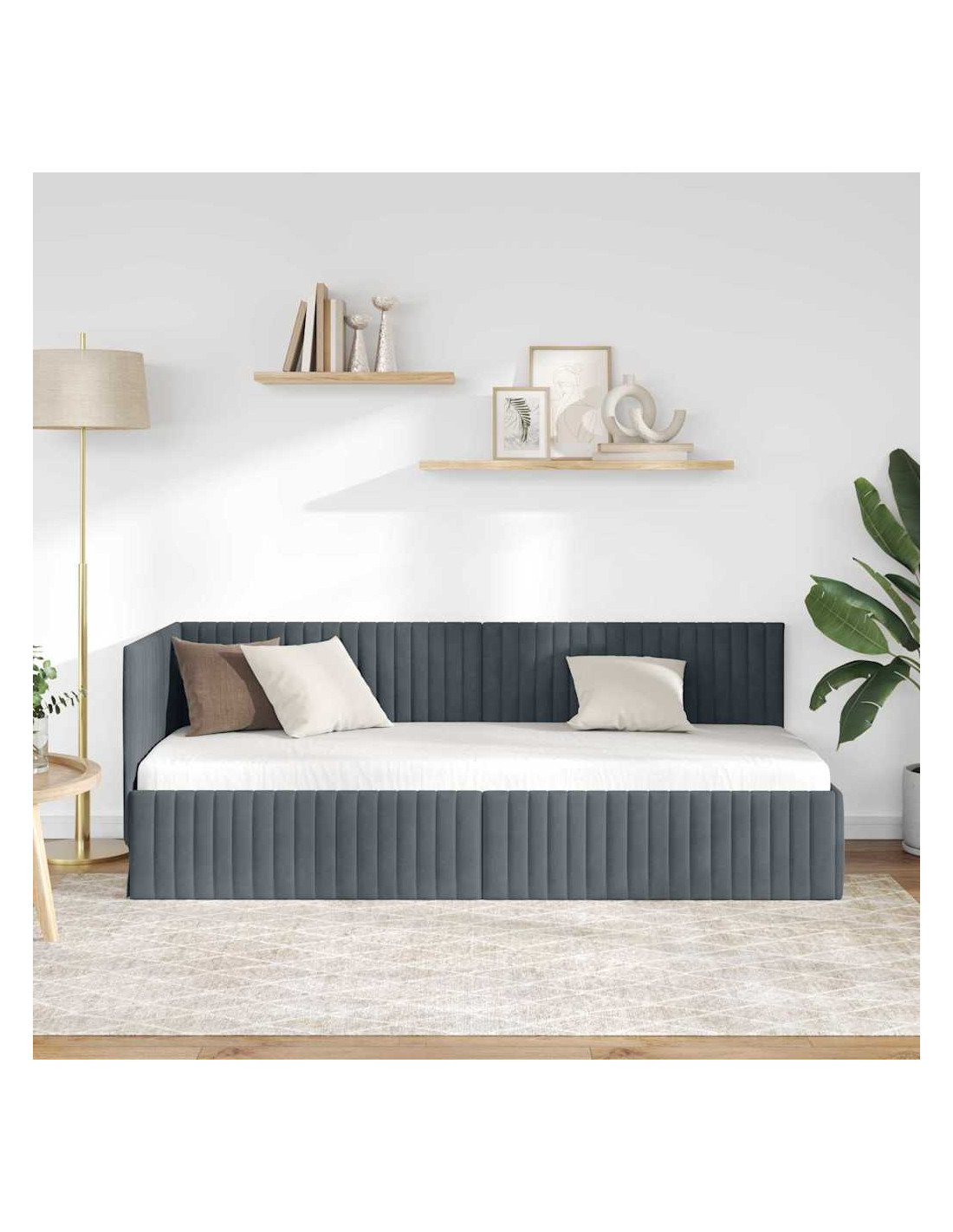 Questo Letto d'Angolo in Velluto combina raffinatezza e semplicità moderna, trasformando ogni camera da letto in un luogo lussuoso. Con linee pulite e un tocco di velluto, cattura lo spirito dello stile contemporaneo, rendendolo un'aggiunta perfetta per chi ama un mix di accuratezza e praticità. La superficie morbida è pensata per coccolarti, offrendoti comfort senza rinunciare all'estetica.