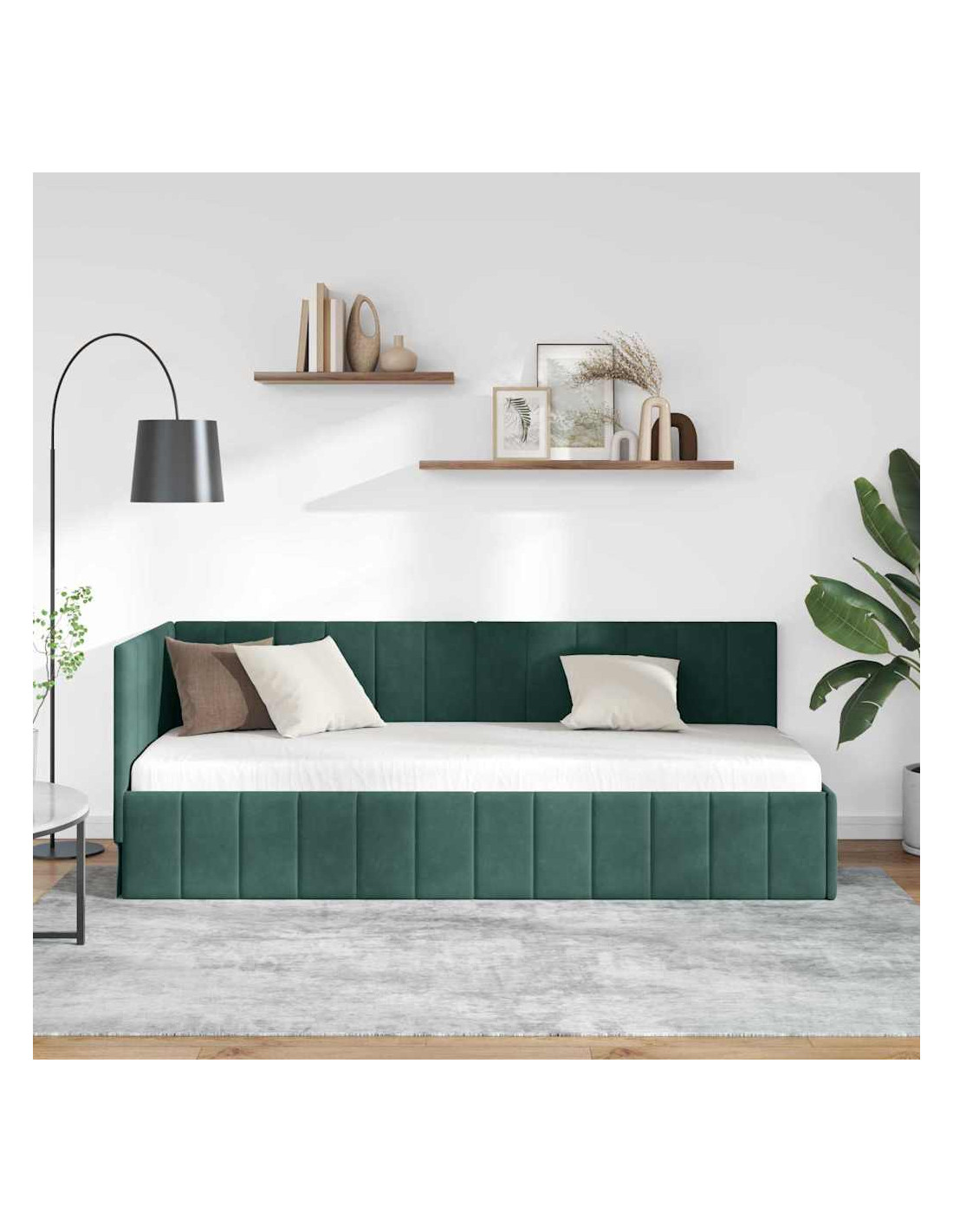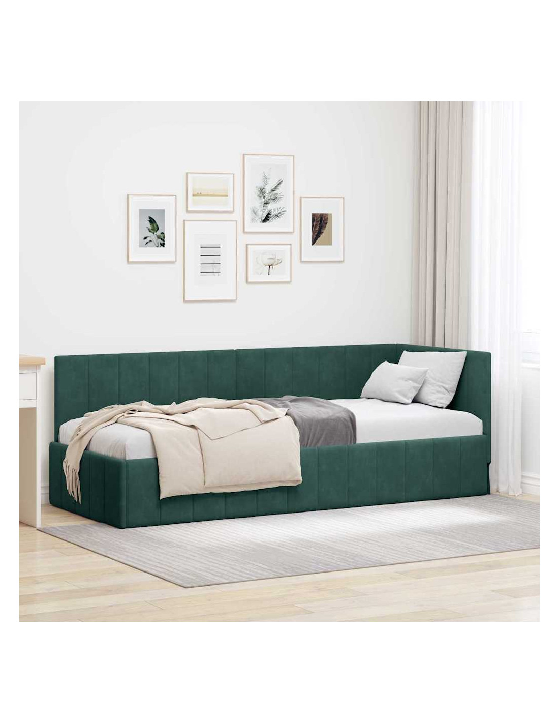 Questo letto angolare in velluto è un tocco moderno e semplice per qualsiasi camera da letto, con linee pulite e niente di superfluo. È fatto di legno ingegnerizzato, con una finitura soft-touch in velluto, ed è il centro dell'attenzione mentre offre un comfort eccezionale per il sonno. La forma rettangolare del telaio si adatta perfettamente a diversi layout, portando eleganza e funzionalità nella stanza.