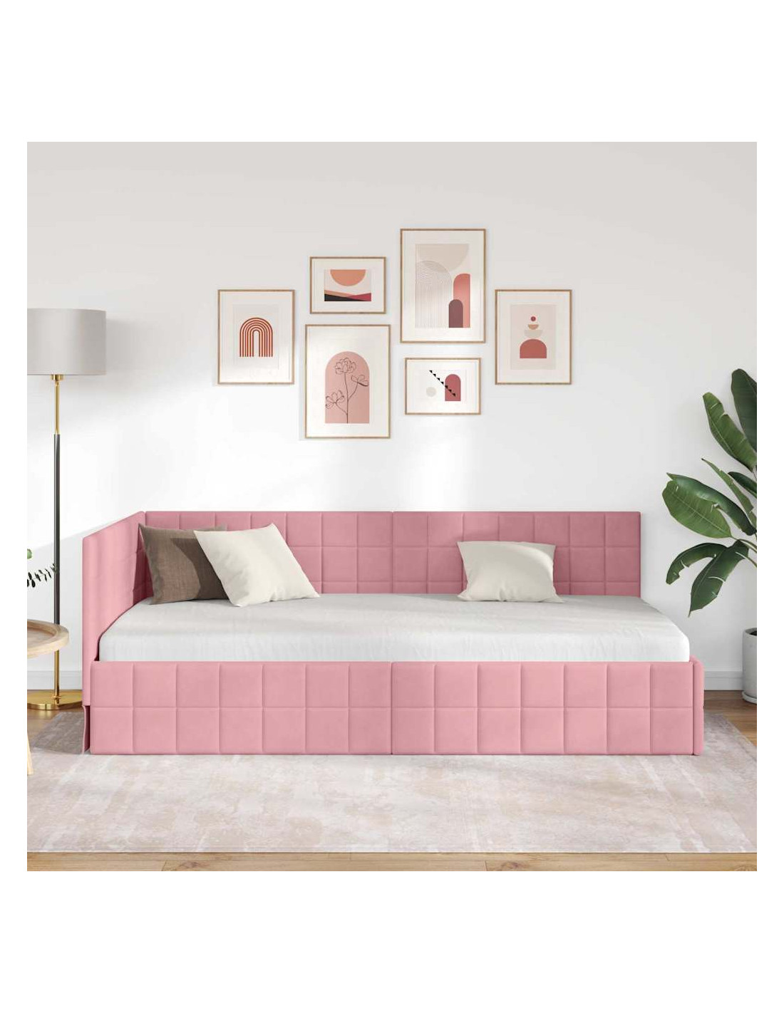 La Struttura Letto Angolare in Velluto è la combinazione perfetta di stile moderno e lusso. Con un design e un aspetto fantastici, questa struttura letto è semplice e adatta a chi cerca quel tocco di classe senza sacrificare la funzionalità nella propria camera. La texture vellutata rende la stanza calda e accogliente e si abbina bene a quasi tutti gli stili di arredamento. È perfetta per chi vive in città o per chi ama i mobili chic, unendo eleganza e praticità.