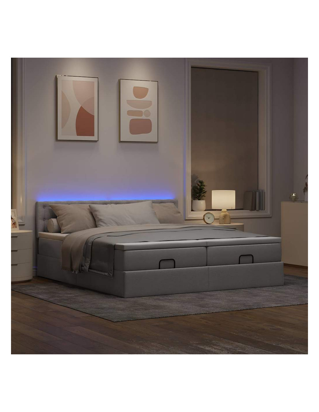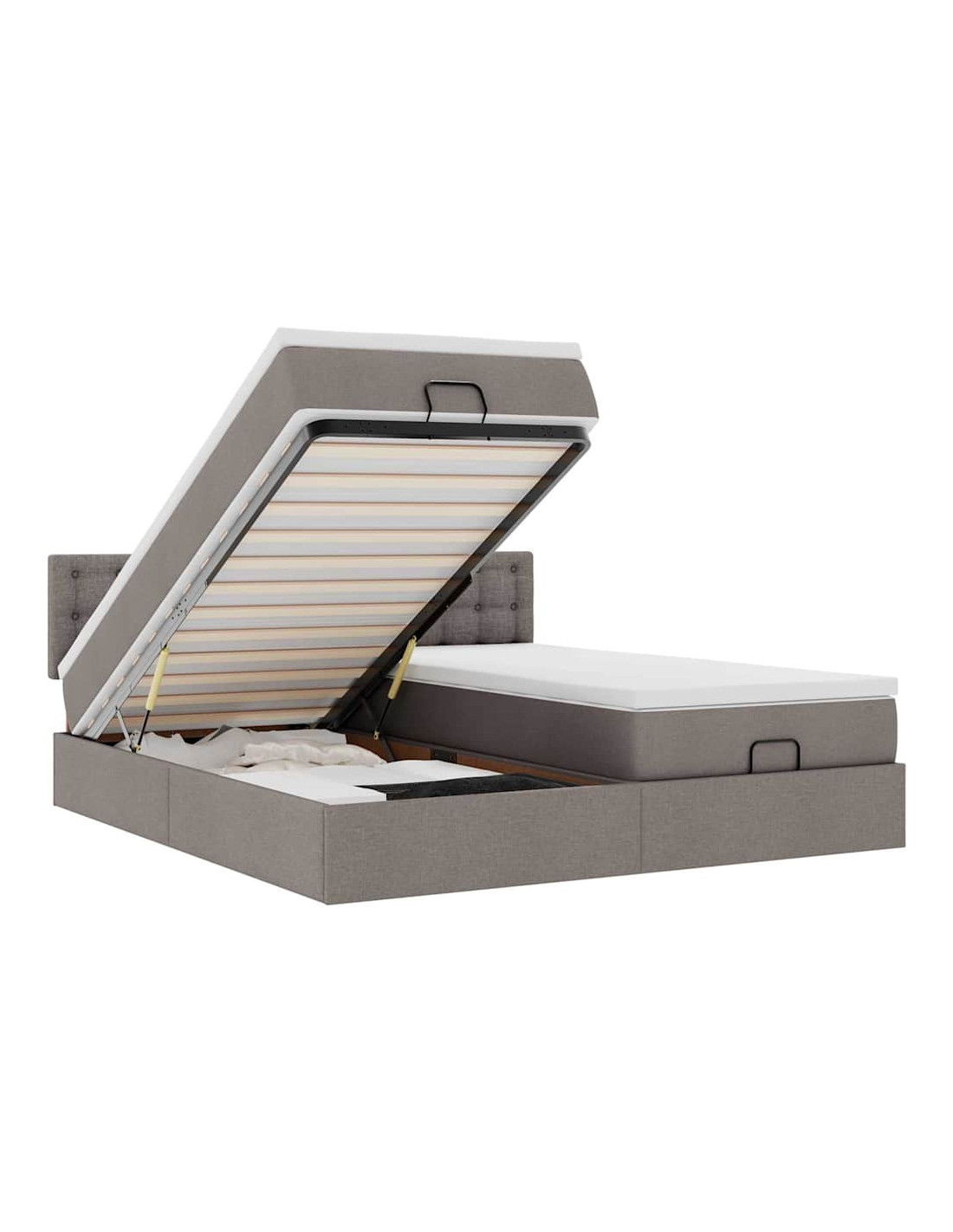 • Ampio vano portaoggetti sotto il letto: Grazie al meccanismo di sollevamento idraulico, il giroletto offre un ampio spazio sotto il letto, massimizzando lo spazio senza occupare ulteriore spazio sul pavimento. Con una semplice trazione della maniglia, la base a doghe si solleva dolcemente, permettendoti di recuperare i tuoi oggetti in modo rapido e senza sforzo.