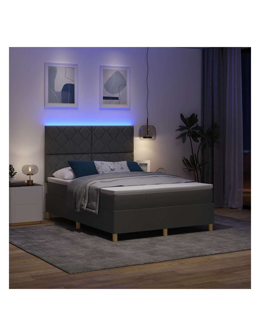 Questo letto con molle king-size unisce design moderno e comfort, trovando il giusto equilibrio tra stile e praticità. Perfetto per chi ama la semplicità, aggiunge un tocco chic a qualsiasi camera contemporanea. La testata in poliestere si integra bene con la decorazione della stanza, mentre l'illuminazione LED crea un'atmosfera riposante. Questo letto non migliora solo il tuo spazio per dormire; lo rende un vero e proprio angolo di relax.