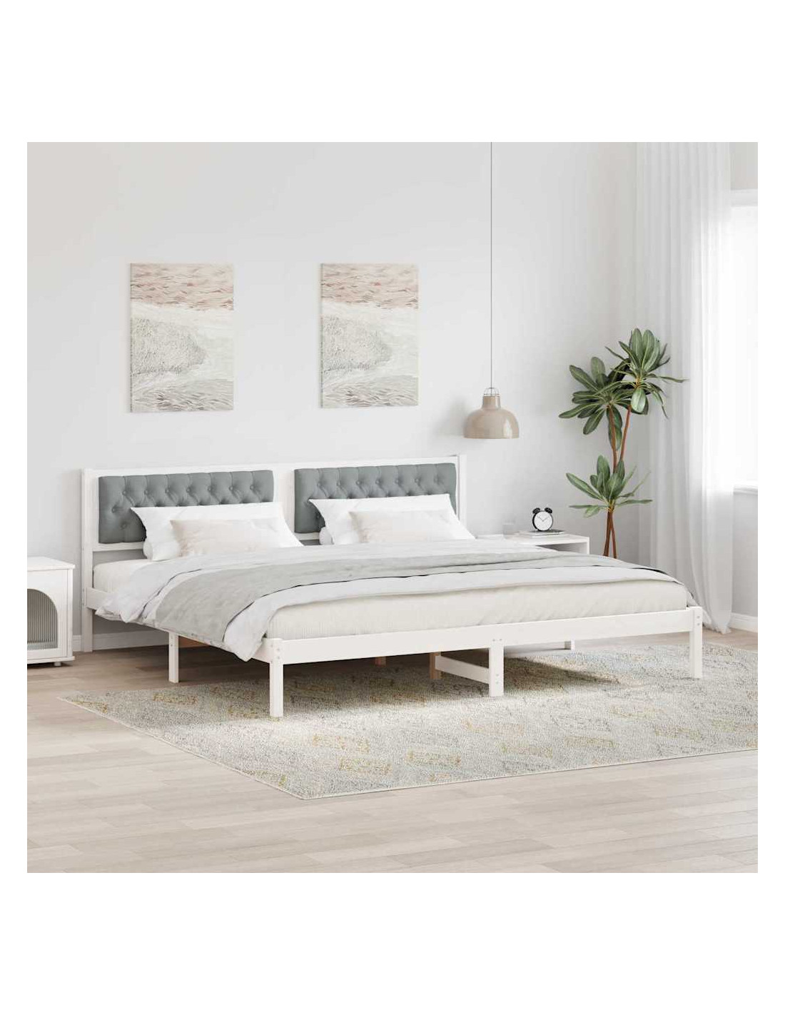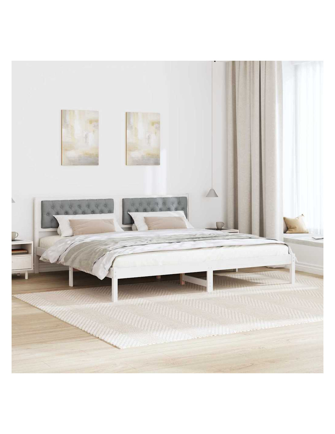 - Costruzione in pino massello Questo letto è fatto di legno massello di pino, noto per la sua durabilità e il suo fascino senza tempo. È resistente e contribuisce a un'atmosfera naturale e calda, migliorando il comfort della camera.