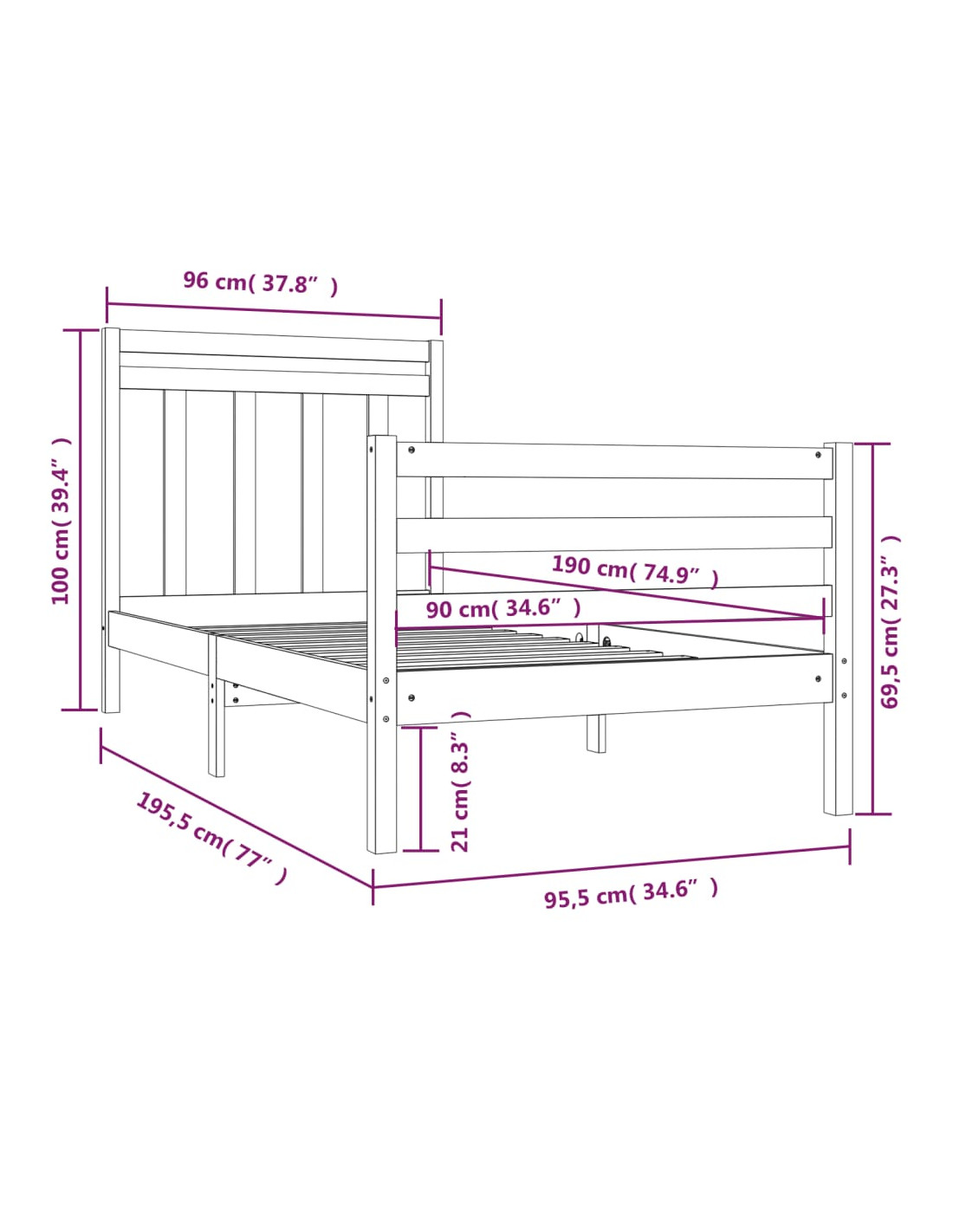 - Dimensioni del materasso adatto: 90 x 190 cm (P x L) (3FT Single) (il materasso non è incluso)