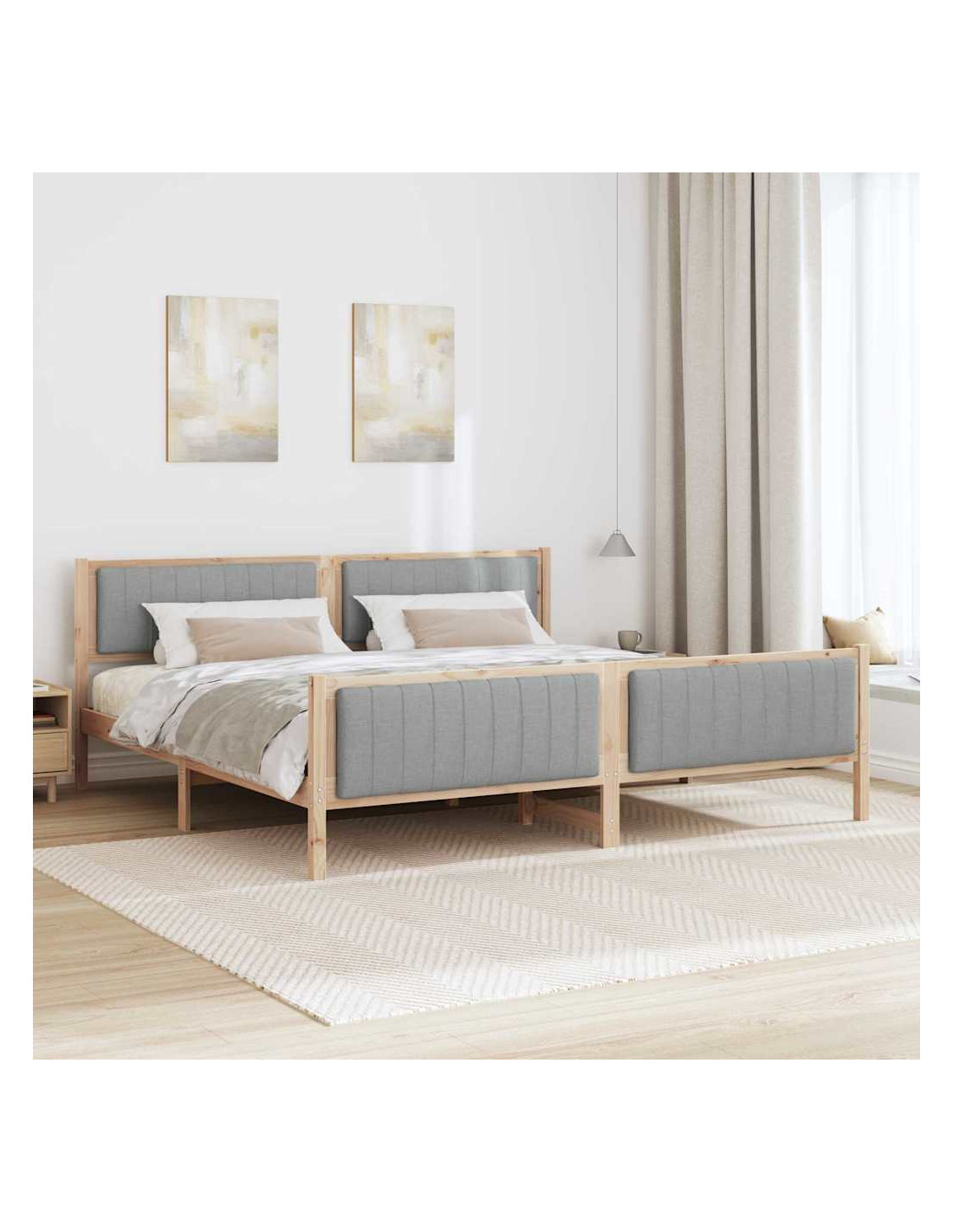 - Materiali: Realizzato con legno massello di pino resistente, il telaio del letto offre stabilità e un aspetto naturale. Progettato per uso interno, combina funzionalità e stile, garantendo durabilità nel tempo.