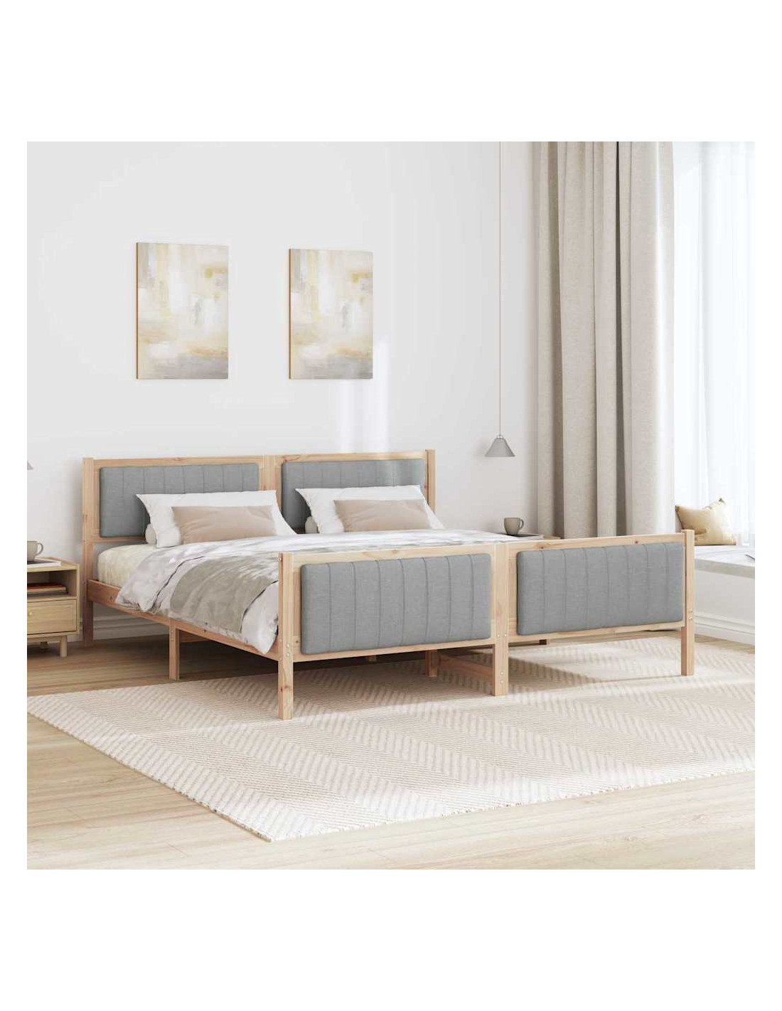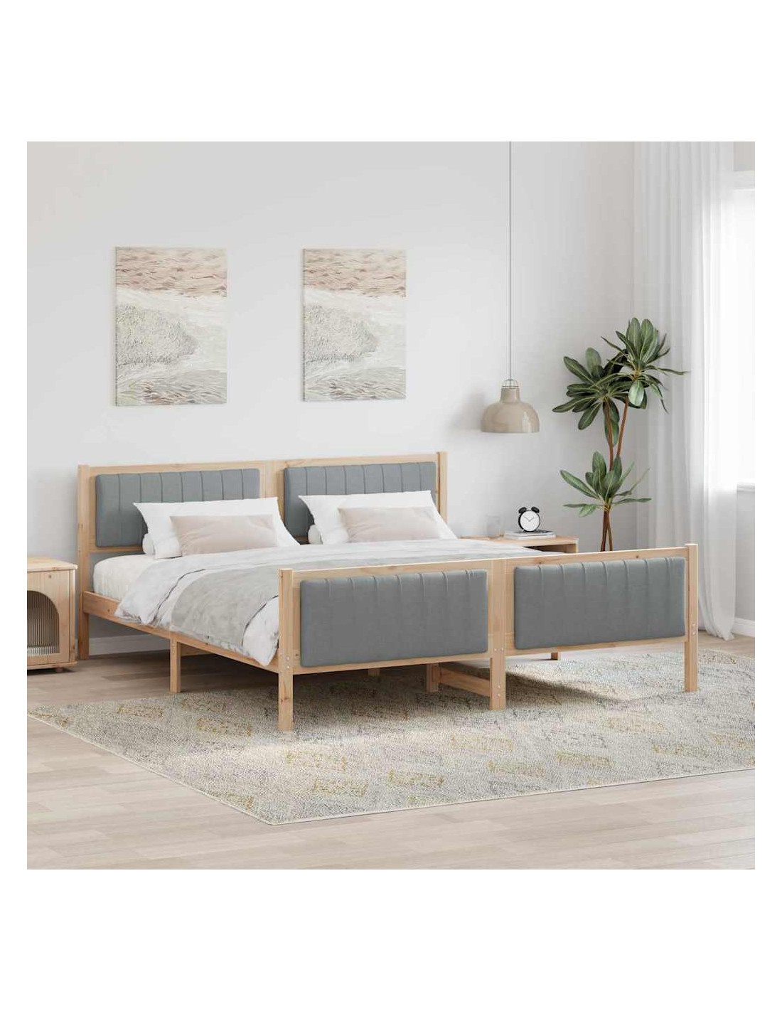 - Materiali: Realizzato con legno massello di pino resistente, il telaio del letto offre stabilità e un aspetto naturale. Progettato per uso interno, combina funzionalità e stile, garantendo durabilità nel tempo.