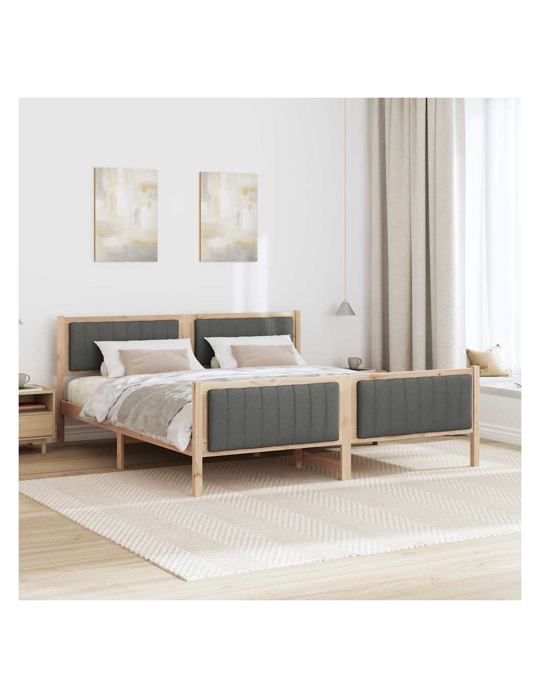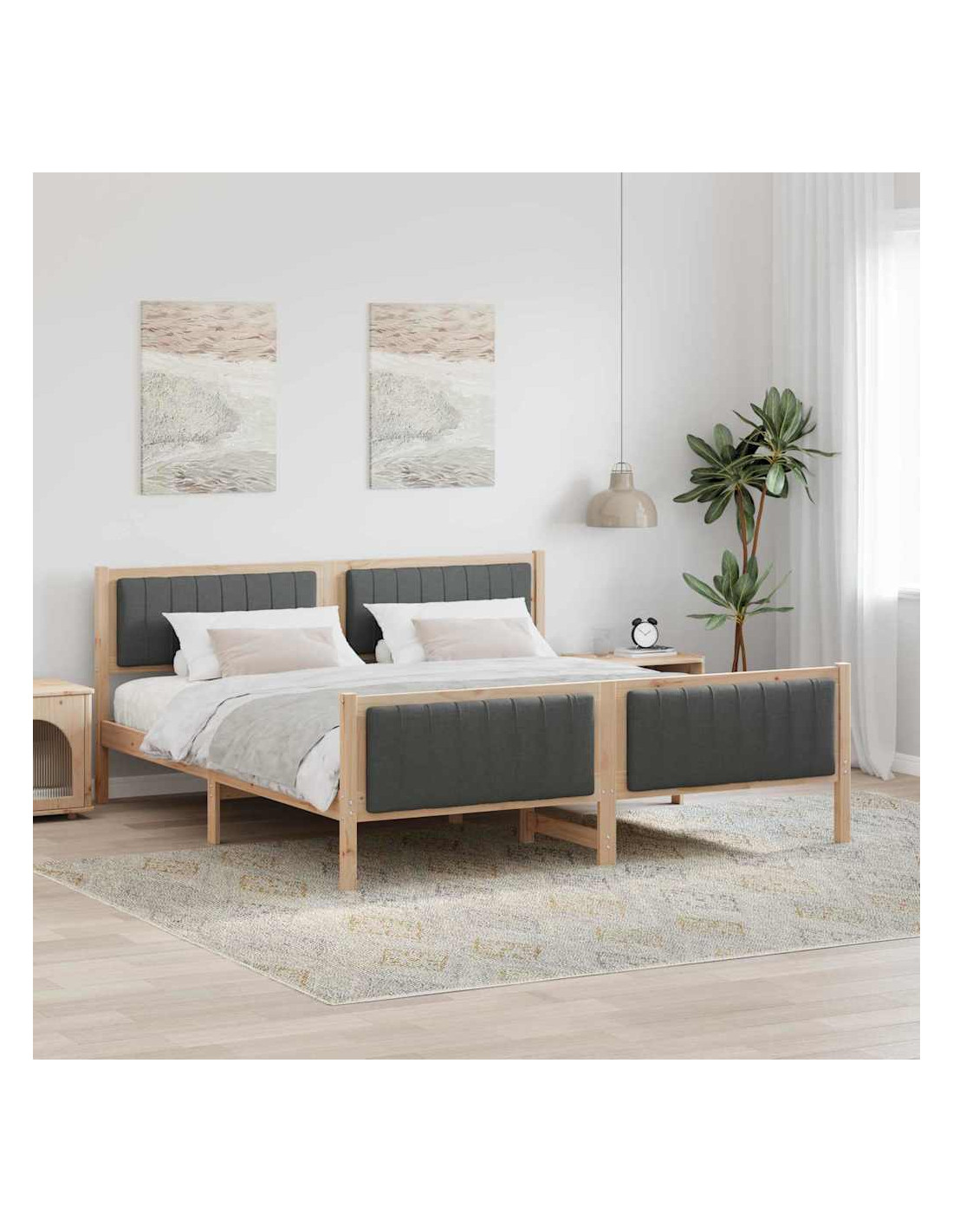 - Materiali: Realizzato con legno massello di pino resistente, il telaio del letto offre stabilità e un aspetto naturale. Progettato per uso interno, combina funzionalità e stile, garantendo durabilità nel tempo.