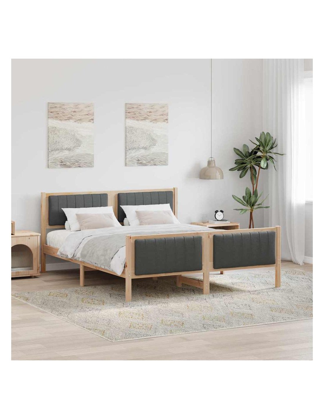 - Materiali: Realizzato con legno massello di pino resistente, il telaio del letto offre stabilità e un aspetto naturale. Progettato per uso interno, combina funzionalità e stile, garantendo durabilità nel tempo.