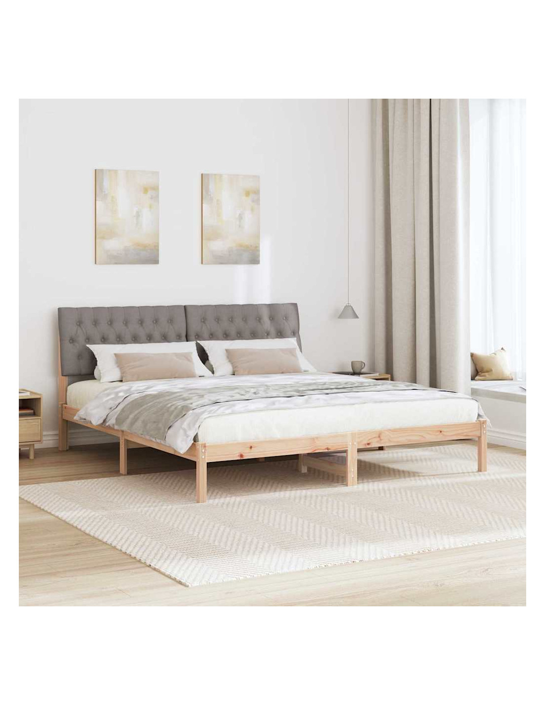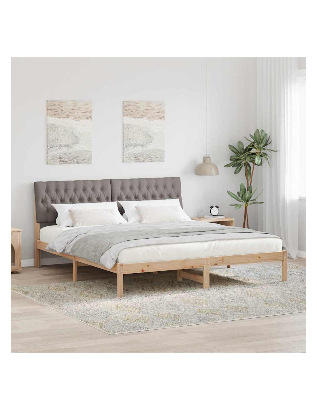 Questa moderna struttura letti piattaforma unisce senza sforzo stile e funzionalità, diventando il pezzo forte della tua camera. La finitura marrone raffinata e la superficie liscia le danno un aspetto elegante e accogliente, mentre la testiera grigia chiara offre un bel contrasto. È progettata per ospitare un materasso senza rete a molle, rendendo tutto più semplice. Con la testiera montata a parete e gambe in legno massello di pino, crea un bel mix tra forma e funzione, ideale per chi cerca sia estetica che praticità.
