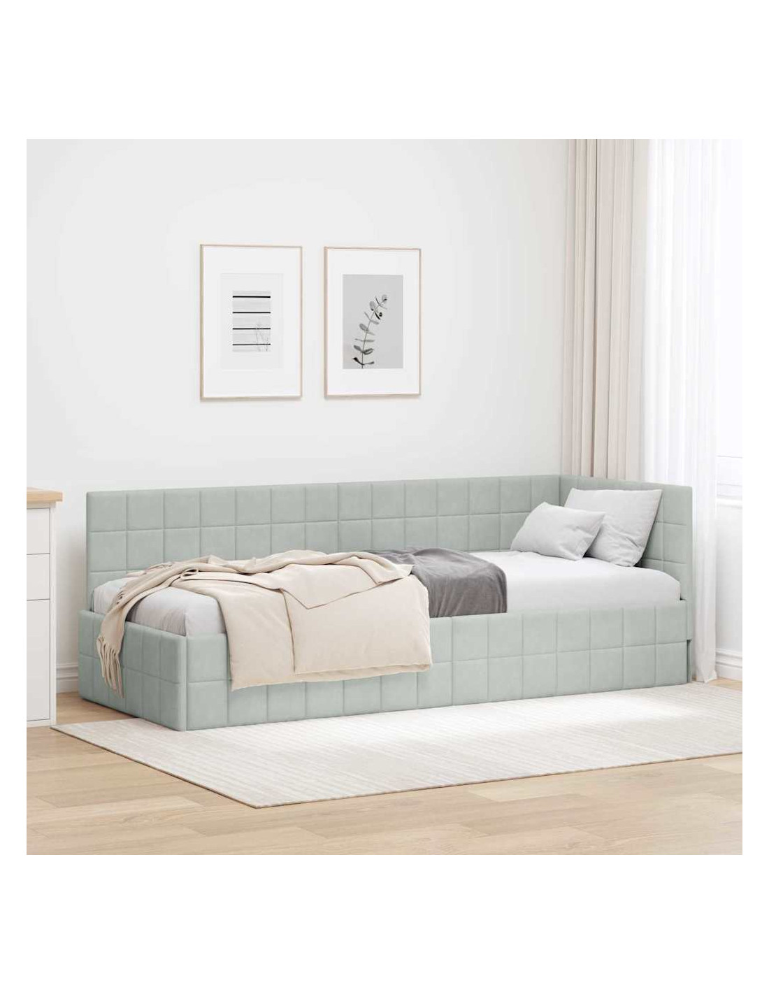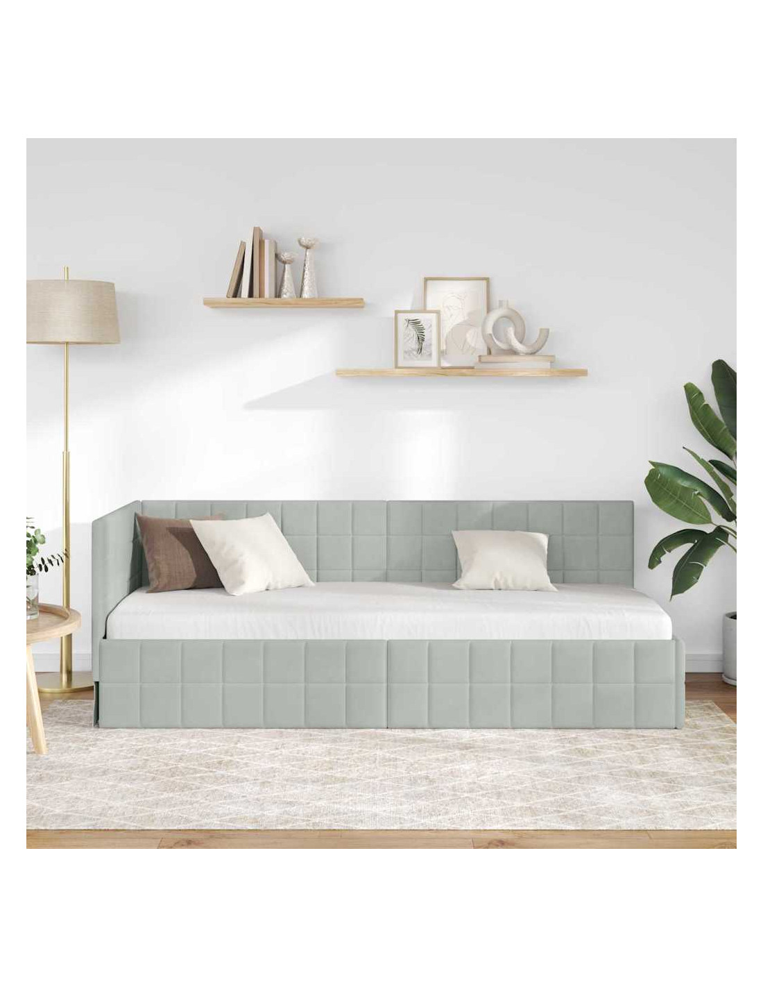 La Struttura Letto Angolare in Velluto è la combinazione perfetta di stile moderno e lusso. Con un design e un aspetto fantastici, questa struttura letto è semplice e adatta a chi cerca quel tocco di classe senza sacrificare la funzionalità nella propria camera. La texture vellutata rende la stanza calda e accogliente e si abbina bene a quasi tutti gli stili di arredamento. È perfetta per chi vive in città o per chi ama i mobili chic, unendo eleganza e praticità.