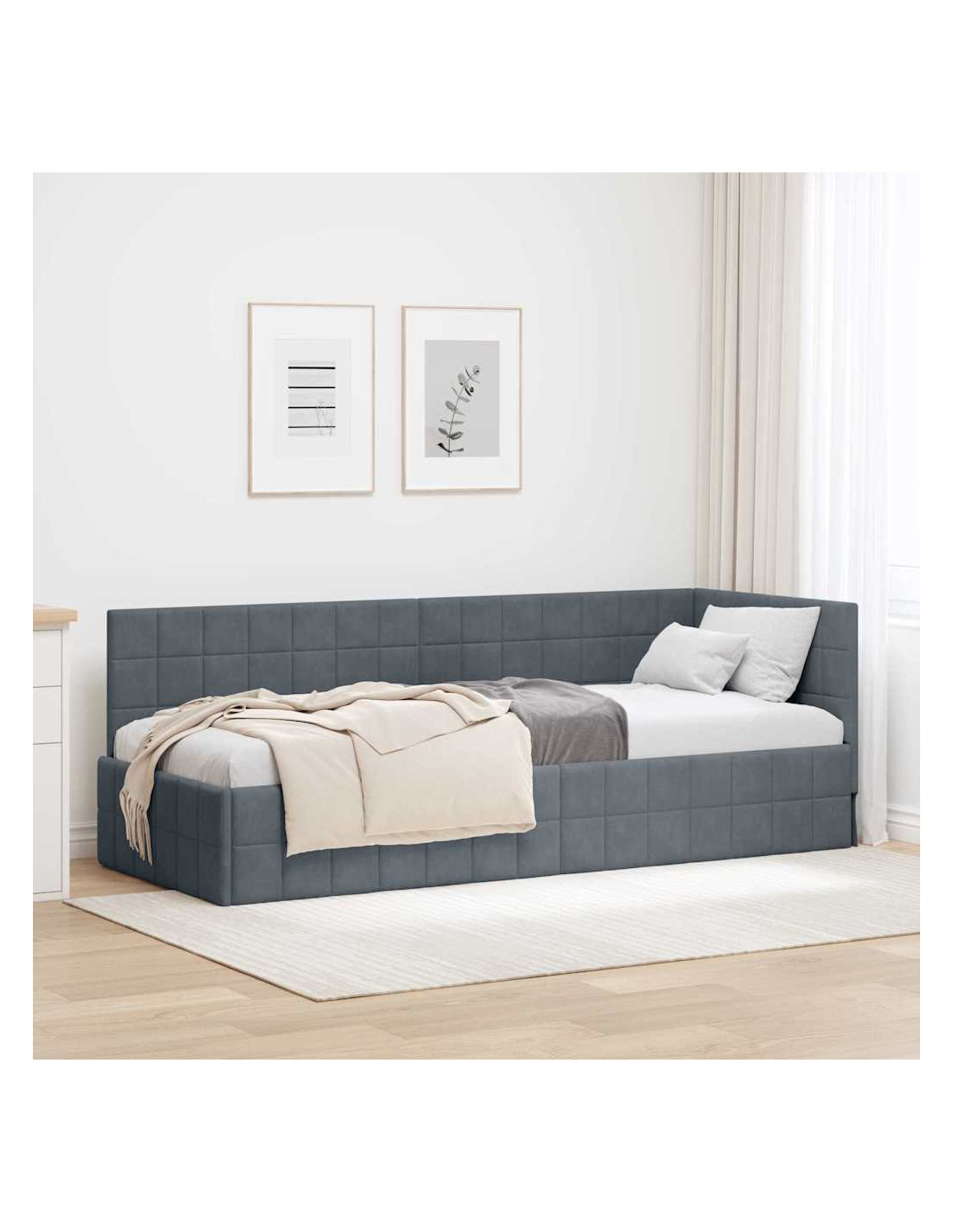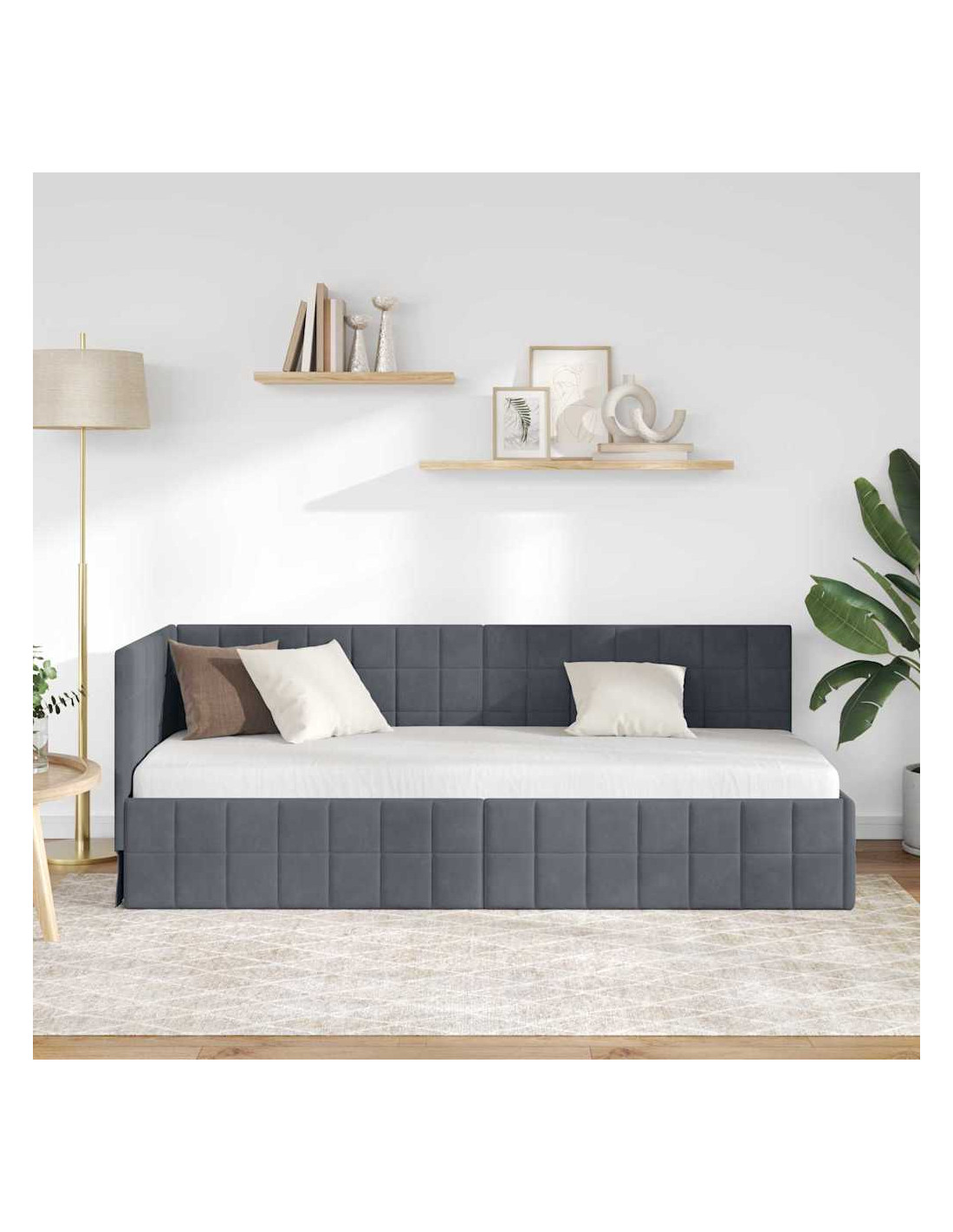 La Struttura Letto Angolare in Velluto è la combinazione perfetta di stile moderno e lusso. Con un design e un aspetto fantastici, questa struttura letto è semplice e adatta a chi cerca quel tocco di classe senza sacrificare la funzionalità nella propria camera. La texture vellutata rende la stanza calda e accogliente e si abbina bene a quasi tutti gli stili di arredamento. È perfetta per chi vive in città o per chi ama i mobili chic, unendo eleganza e praticità.