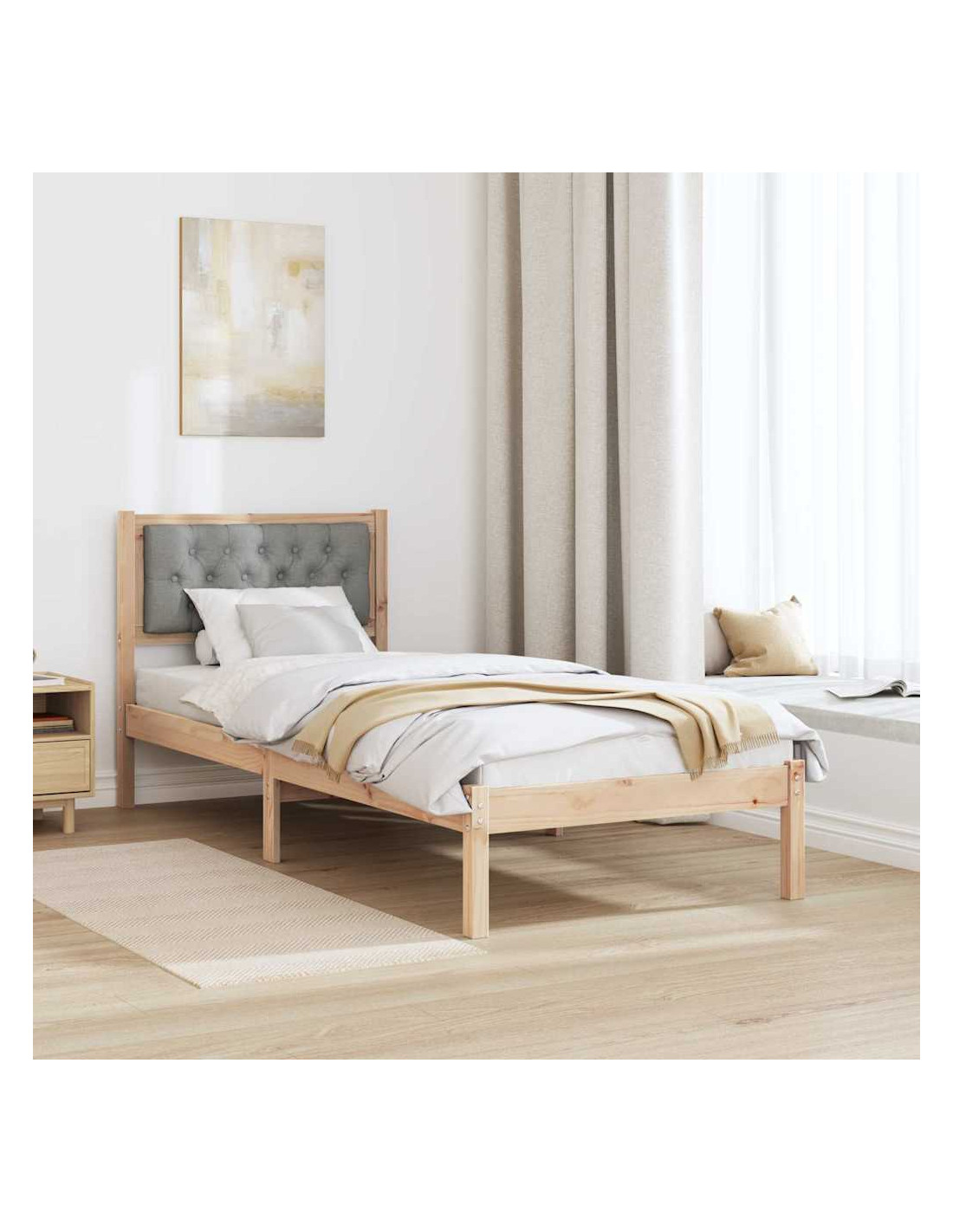 - Costruzione in pino massello Questo letto è fatto di legno massello di pino, noto per la sua durabilità e il suo fascino senza tempo. È resistente e contribuisce a un'atmosfera naturale e calda, migliorando il comfort della camera.