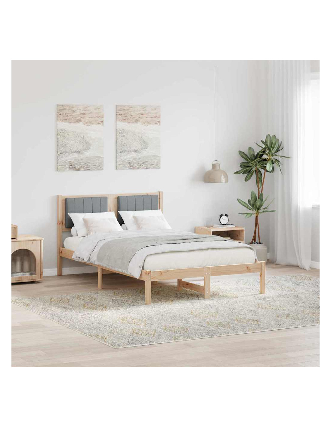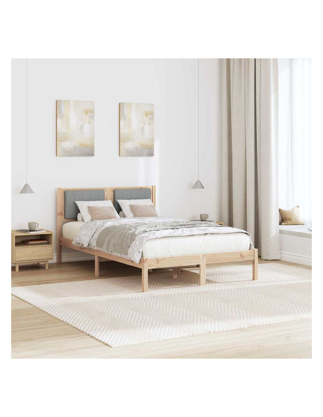 - Struttura in legno massello di pino: Questo letto è realizzato in legno massello di pino resistente, garantendo stabilità e forza. È una scelta robusta che sostiene l'uso quotidiano mantenendo il suo fascino. La durabilità del pino lo rende un'aggiunta di valore alla tua camera.