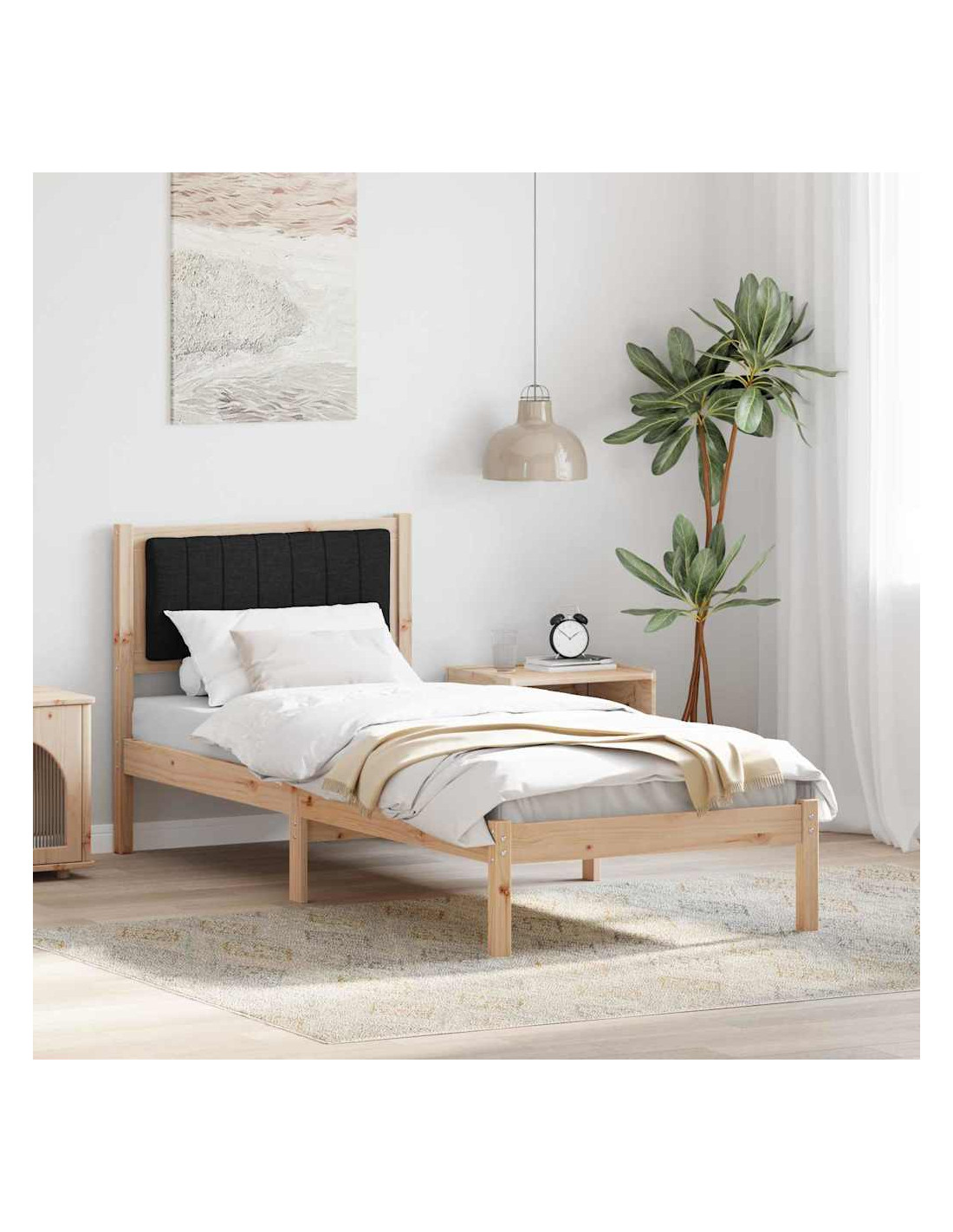 - Struttura in legno massello di pino: Questo letto è realizzato in legno massello di pino resistente, garantendo stabilità e forza. È una scelta robusta che sostiene l'uso quotidiano mantenendo il suo fascino. La durabilità del pino lo rende un'aggiunta di valore alla tua camera.