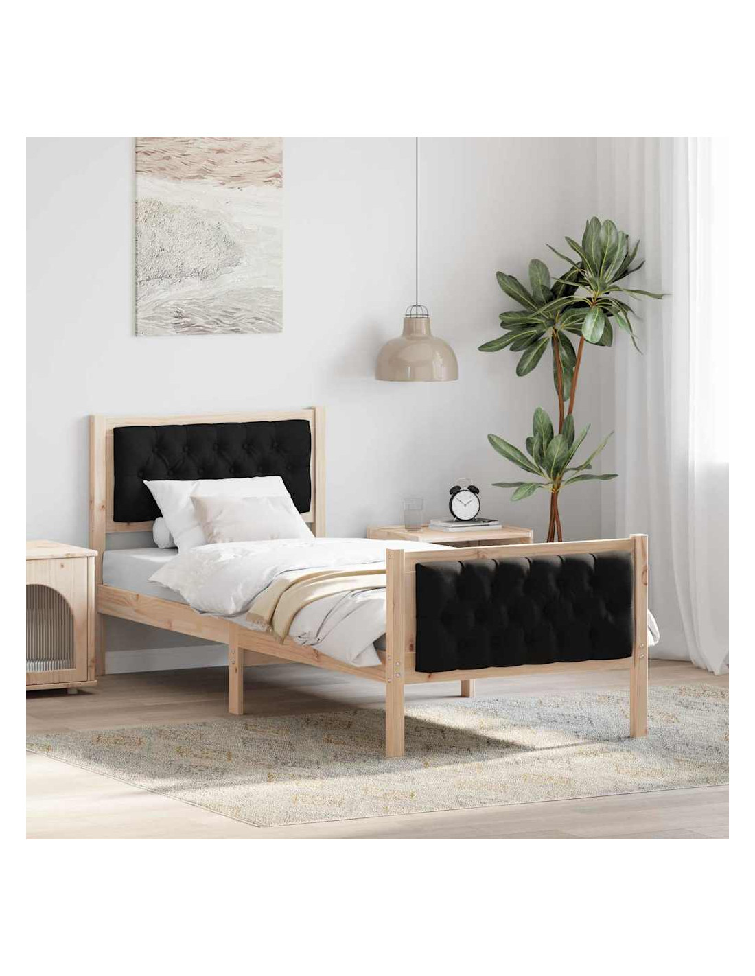 - Struttura in legno massello di pino Questa struttura è costruita in legno massello di pino, offrendo stabilità per un sonno riposante. La resistenza del legno garantisce un uso duraturo, rendendola un elemento affidabile nella tua camera da letto.