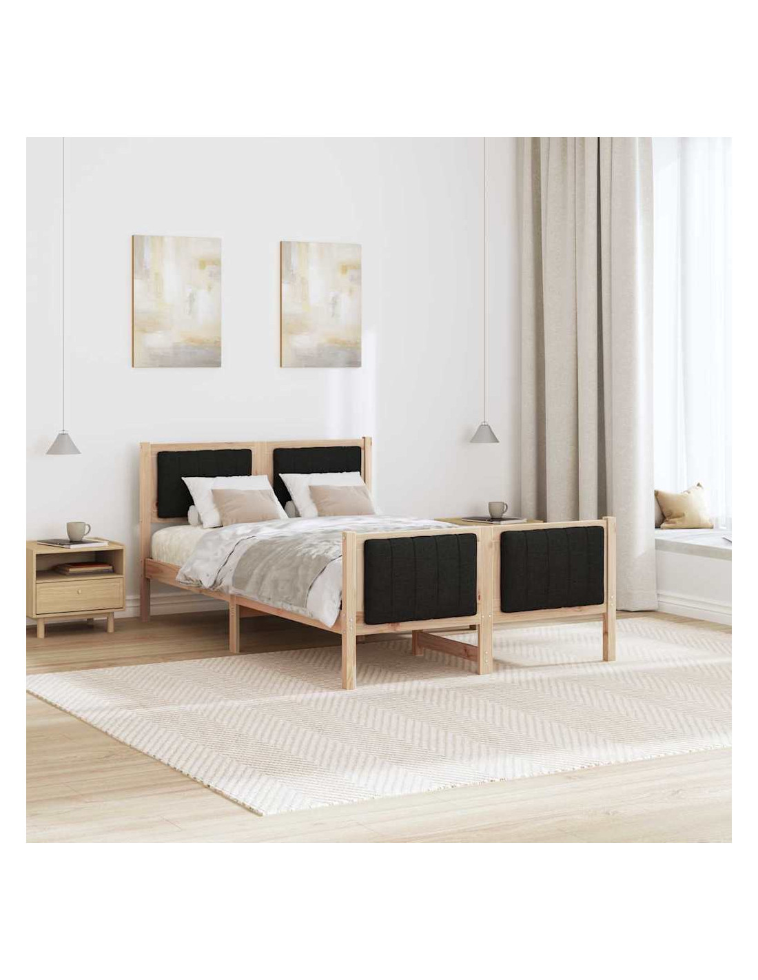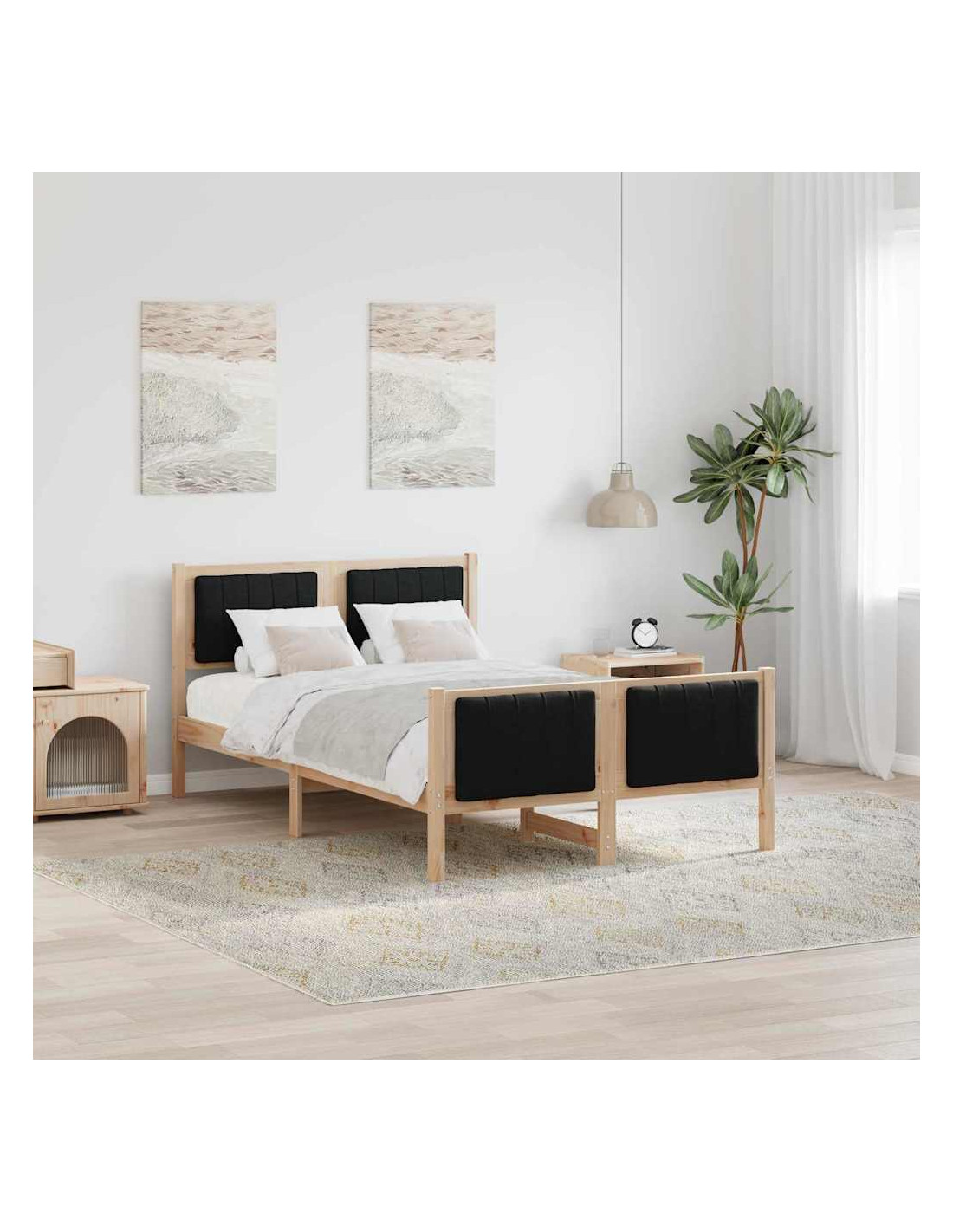 - Materiali: Realizzato con legno massello di pino resistente, il telaio del letto offre stabilità e un aspetto naturale. Progettato per uso interno, combina funzionalità e stile, garantendo durabilità nel tempo.