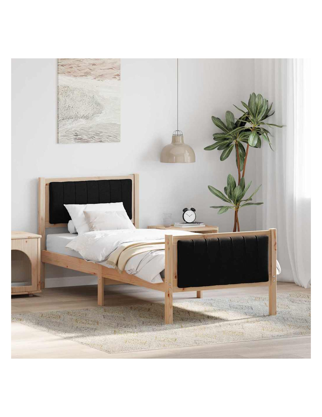 - Materiali: Realizzato con legno massello di pino resistente, il telaio del letto offre stabilità e un aspetto naturale. Progettato per uso interno, combina funzionalità e stile, garantendo durabilità nel tempo.