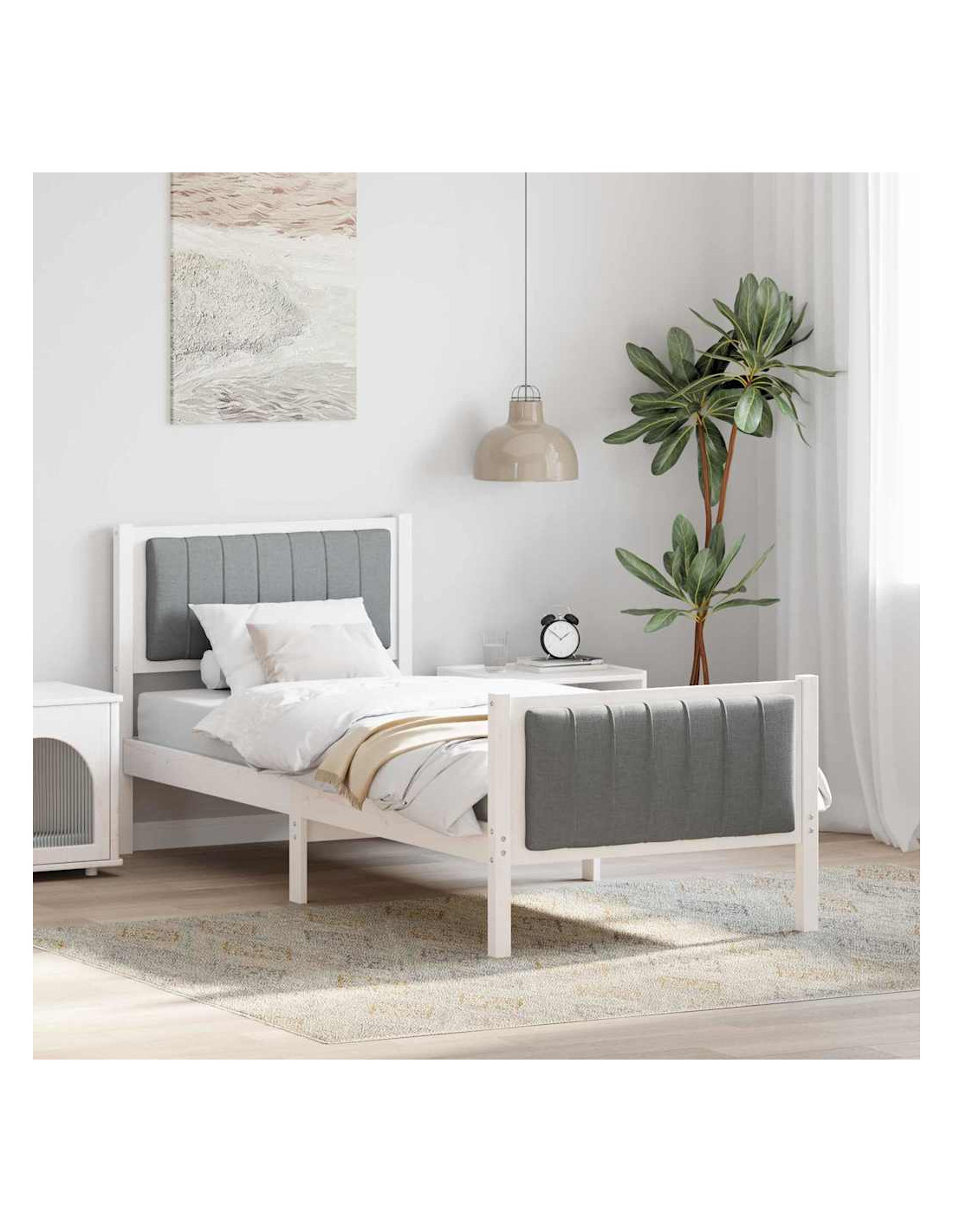 - Materiali: Realizzato con legno massello di pino resistente, il telaio del letto offre stabilità e un aspetto naturale. Progettato per uso interno, combina funzionalità e stile, garantendo durabilità nel tempo.
