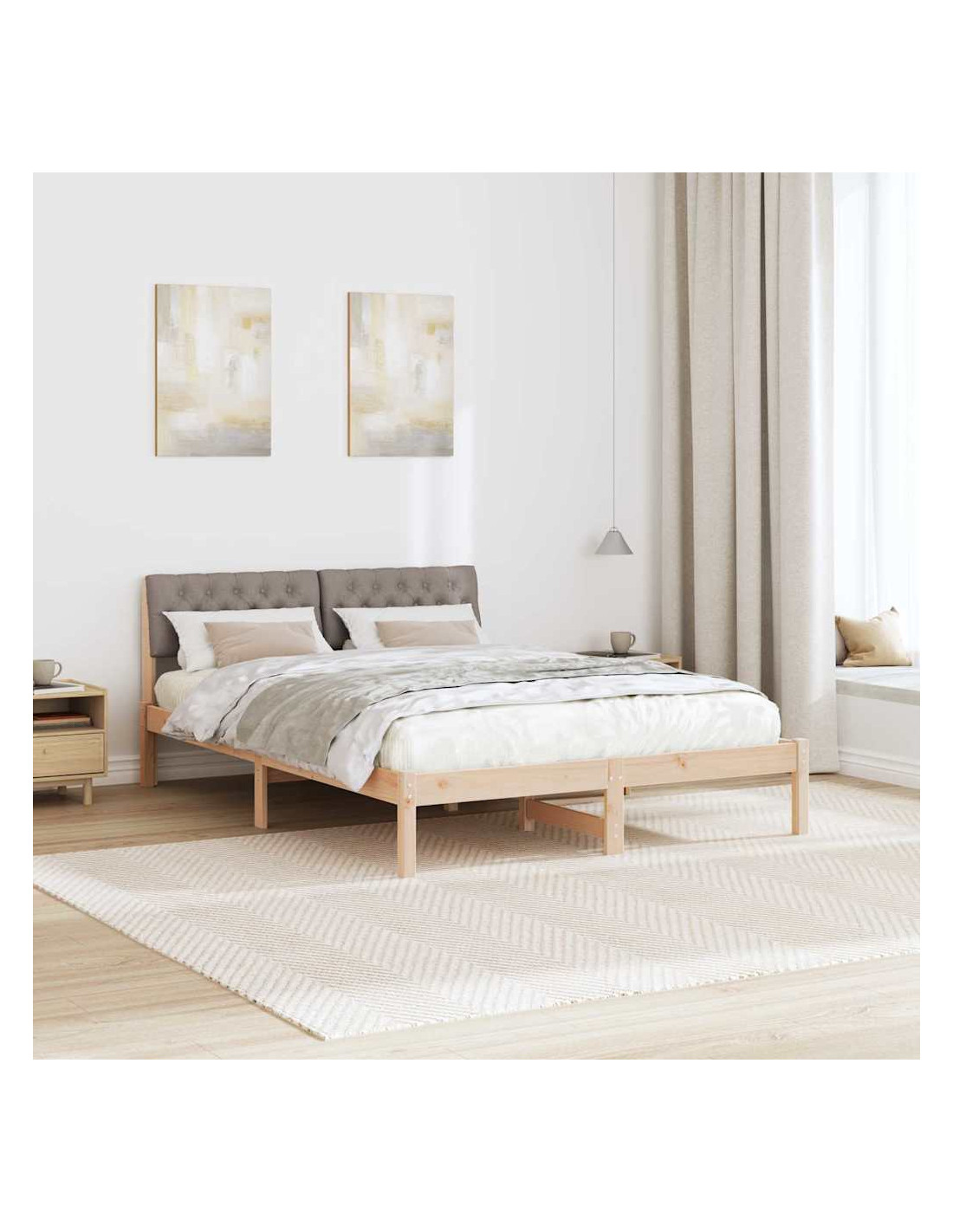 - Costruzione in legno massello di pino Il telaio in legno massello di pino è robusto e durevole, offrendo supporto per notti tranquille. La venatura naturale porta calore e carattere, rendendo il letto ancora più attraente.