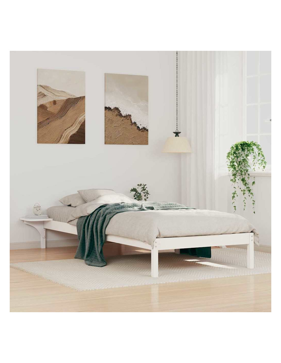 Questo letto è un'ottima aggiunta a qualsiasi camera moderna, unendo design chic e funzionalità. Con i tavolini laterali, il letto non solo appare sofisticato, ma ottimizza lo spazio per i tuoi oggetti essenziali. La finitura liscia e la struttura in legno massello di pino lo rendono pratico e raffinato, perfetto per gli interni di oggi.