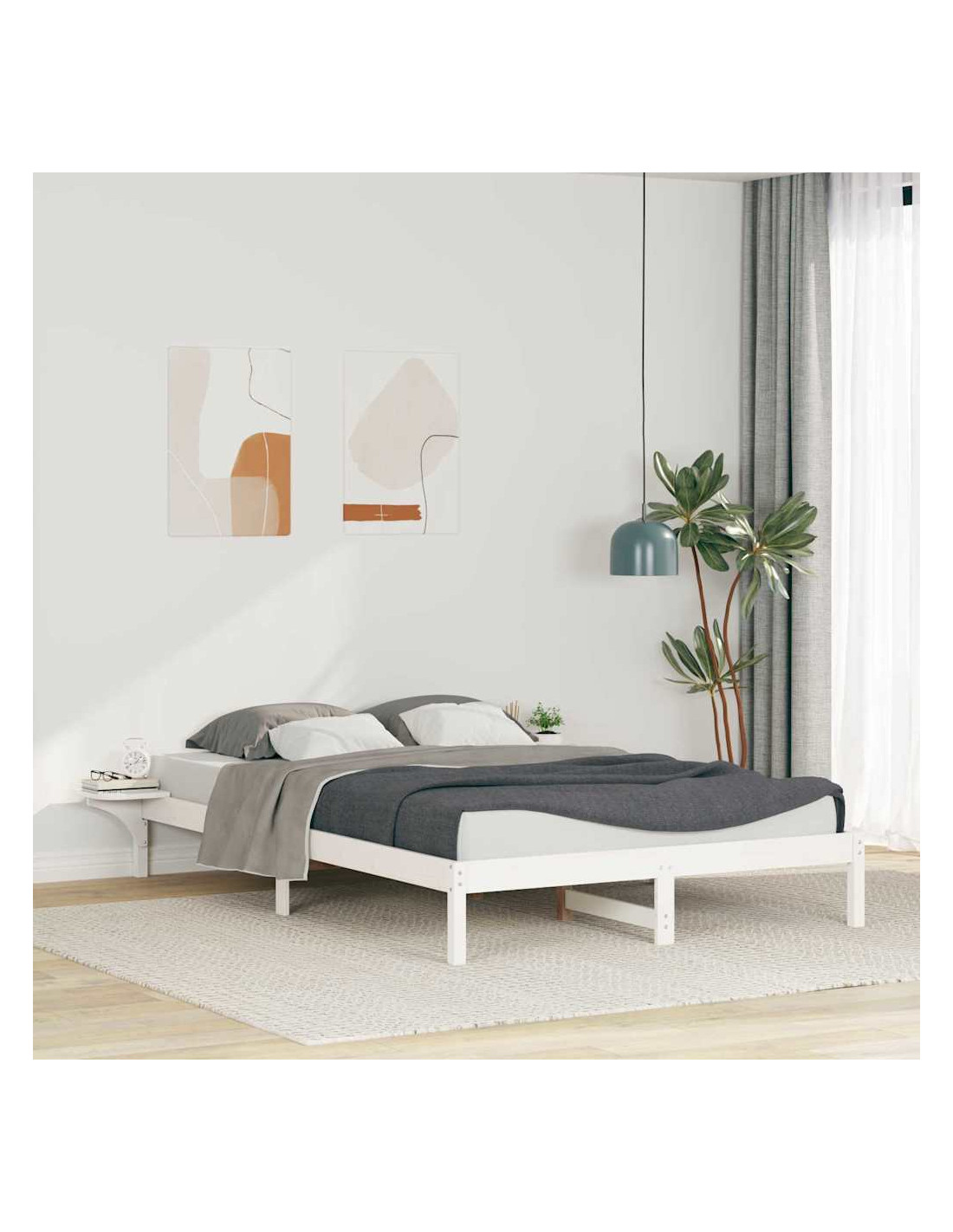 Questo letto è un'ottima aggiunta a qualsiasi camera moderna, unendo design chic e funzionalità. Con i tavolini laterali, il letto non solo appare sofisticato, ma ottimizza lo spazio per i tuoi oggetti essenziali. La finitura liscia e la struttura in legno massello di pino lo rendono pratico e raffinato, perfetto per gli interni di oggi.