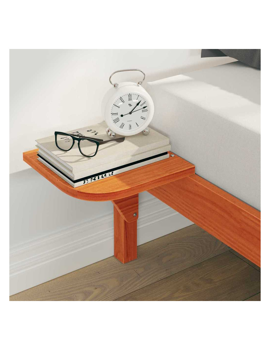 Questo letto è un'ottima aggiunta a qualsiasi camera moderna, unendo design chic e funzionalità. Con i tavolini laterali, il letto non solo appare sofisticato, ma ottimizza lo spazio per i tuoi oggetti essenziali. La finitura liscia e la struttura in legno massello di pino lo rendono pratico e raffinato, perfetto per gli interni di oggi.