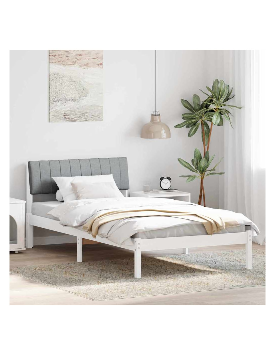 Questa struttura per letto con testiera, realizzata con cura, ha un design moderno e minimalista che valorizza qualsiasi decorazione della camera da letto. Le linee pulite e la forma rettangolare la rendono una base stilosa e funzionale per un sonno tranquillo. Fatta in legno massello di pino, offre stabilità e comfort ed è perfetta per vari stili decorativi, il che la rende una scelta top per chi ama il design semplice ma raffinato.