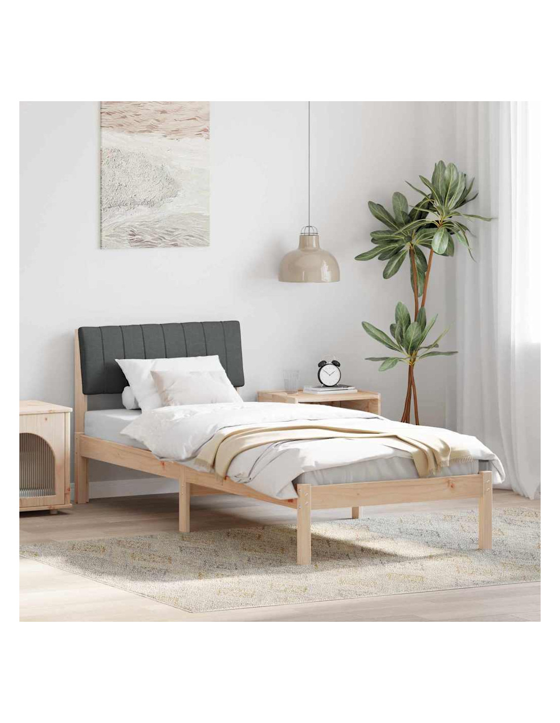 Questa struttura per letto con testiera, realizzata con cura, ha un design moderno e minimalista che valorizza qualsiasi decorazione della camera da letto. Le linee pulite e la forma rettangolare la rendono una base stilosa e funzionale per un sonno tranquillo. Fatta in legno massello di pino, offre stabilità e comfort ed è perfetta per vari stili decorativi, il che la rende una scelta top per chi ama il design semplice ma raffinato.