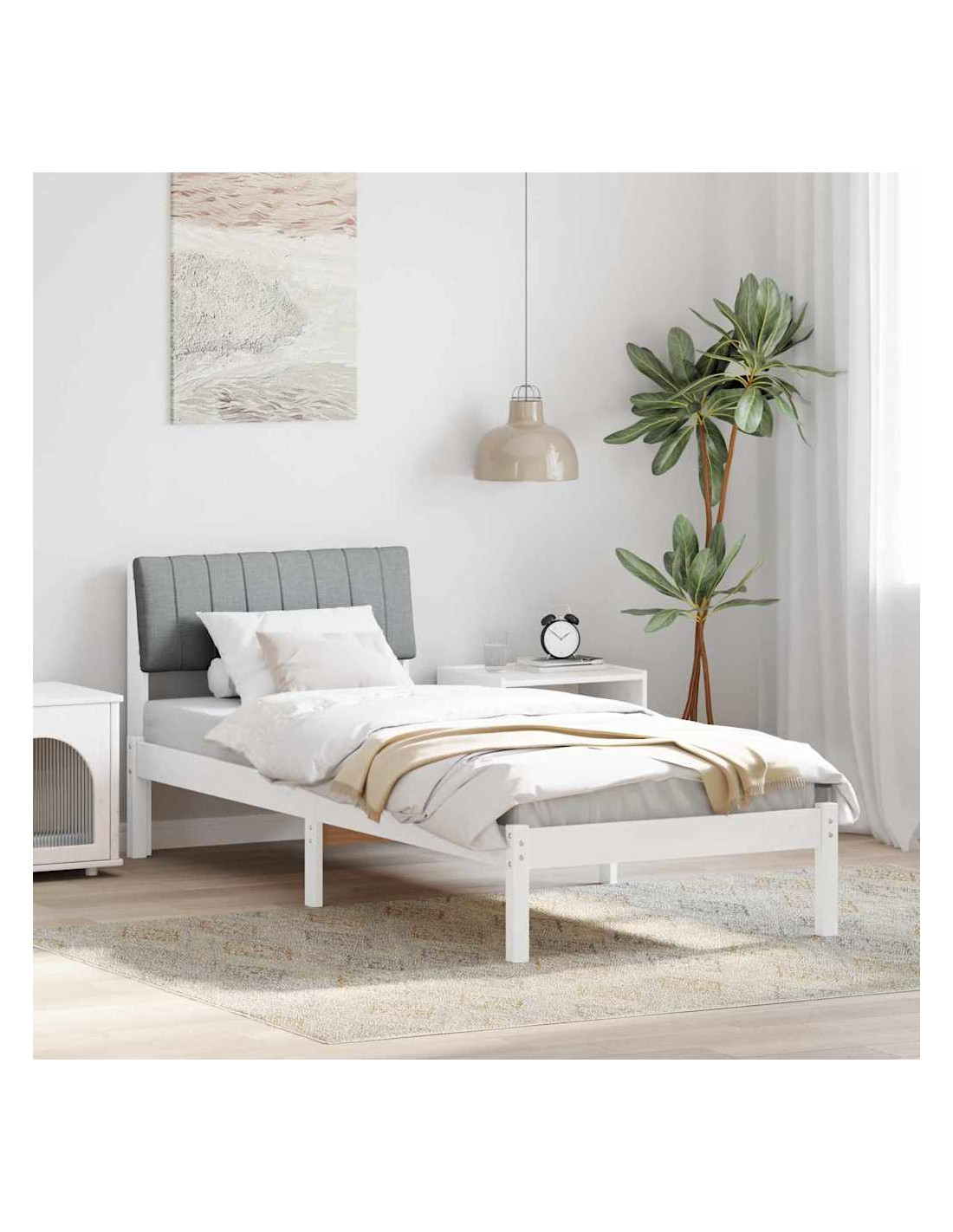 Questa struttura per letto con testiera, realizzata con cura, ha un design moderno e minimalista che valorizza qualsiasi decorazione della camera da letto. Le linee pulite e la forma rettangolare la rendono una base stilosa e funzionale per un sonno tranquillo. Fatta in legno massello di pino, offre stabilità e comfort ed è perfetta per vari stili decorativi, il che la rende una scelta top per chi ama il design semplice ma raffinato.