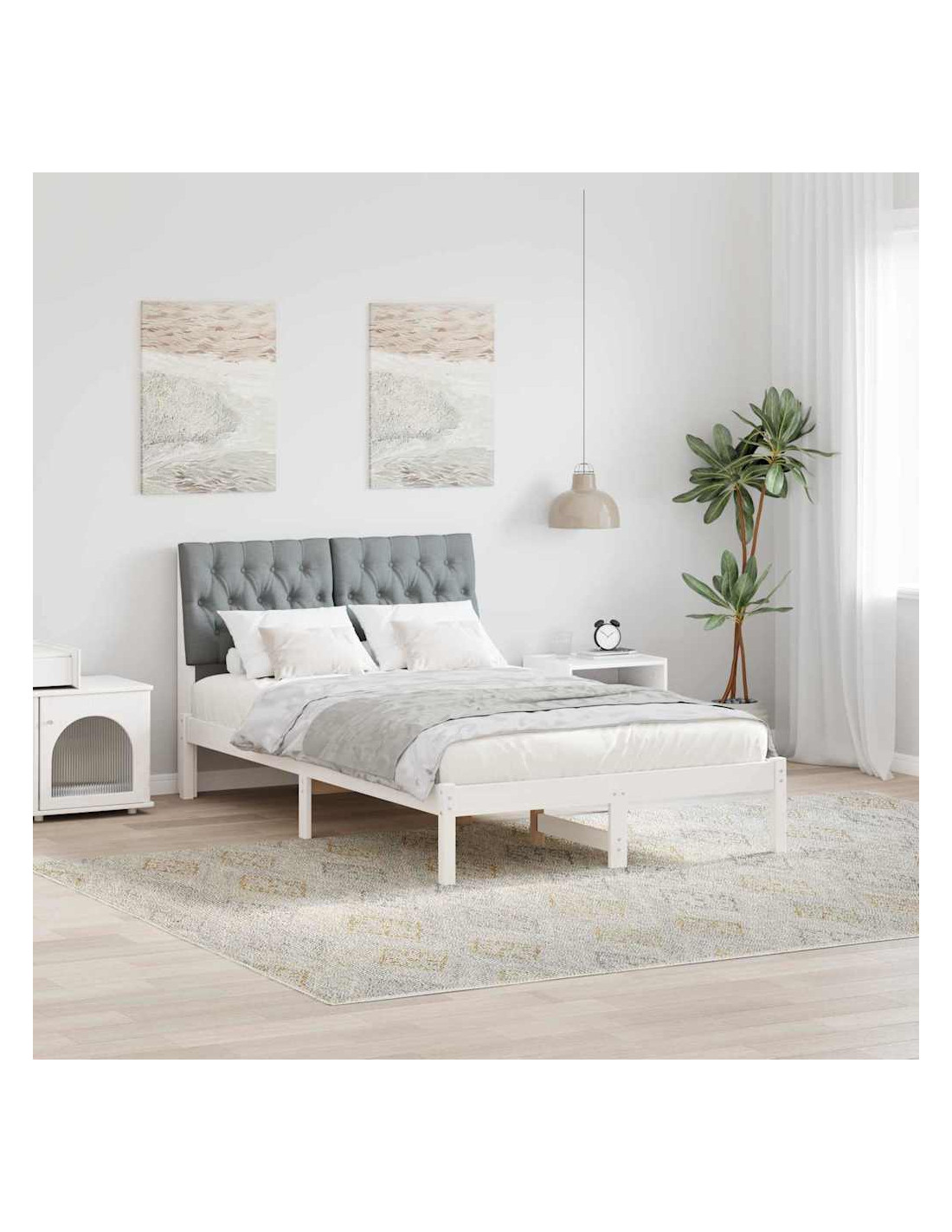 - Durabilità e Funzione: Usando materiali come truciolare e legno massello di pino, la struttura è pensata per durare, mantenendo un aspetto chic. Il design semplice rende facile abbinare vari stili di decorazione della camera da letto.