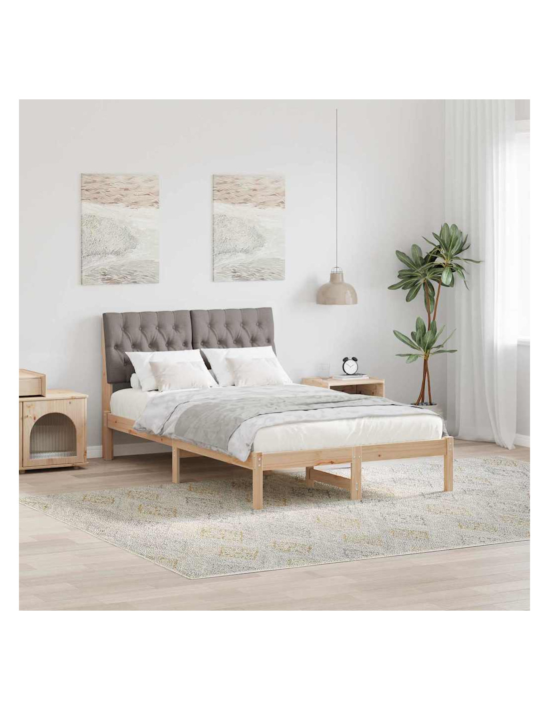 - Durabilità e Funzione: Usando materiali come truciolare e legno massello di pino, la struttura è pensata per durare, mantenendo un aspetto chic. Il design semplice rende facile abbinare vari stili di decorazione della camera da letto.