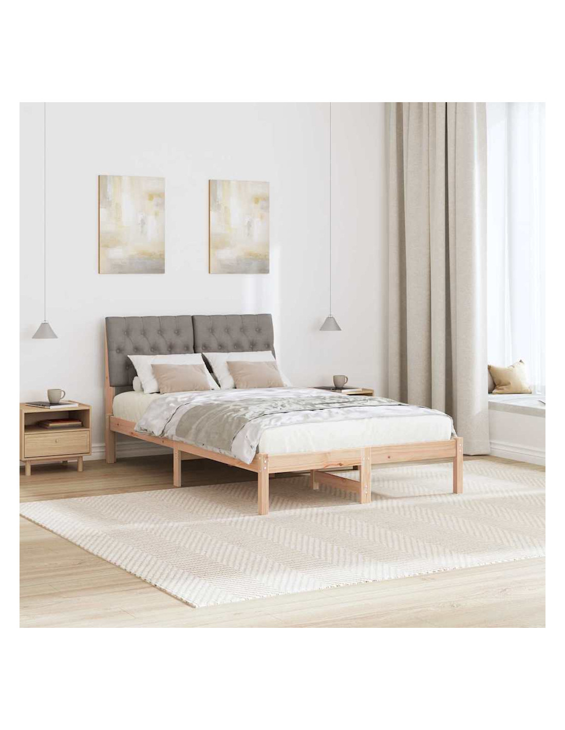 - Materiali e Finitura: La struttura letto è fatta in legno massello di pino, quindi è resistente e durevole. Ha una finitura verniciata che protegge e esalta la bellezza naturale del legno, rendendola elegante e versatile per tanti stili d'interni.