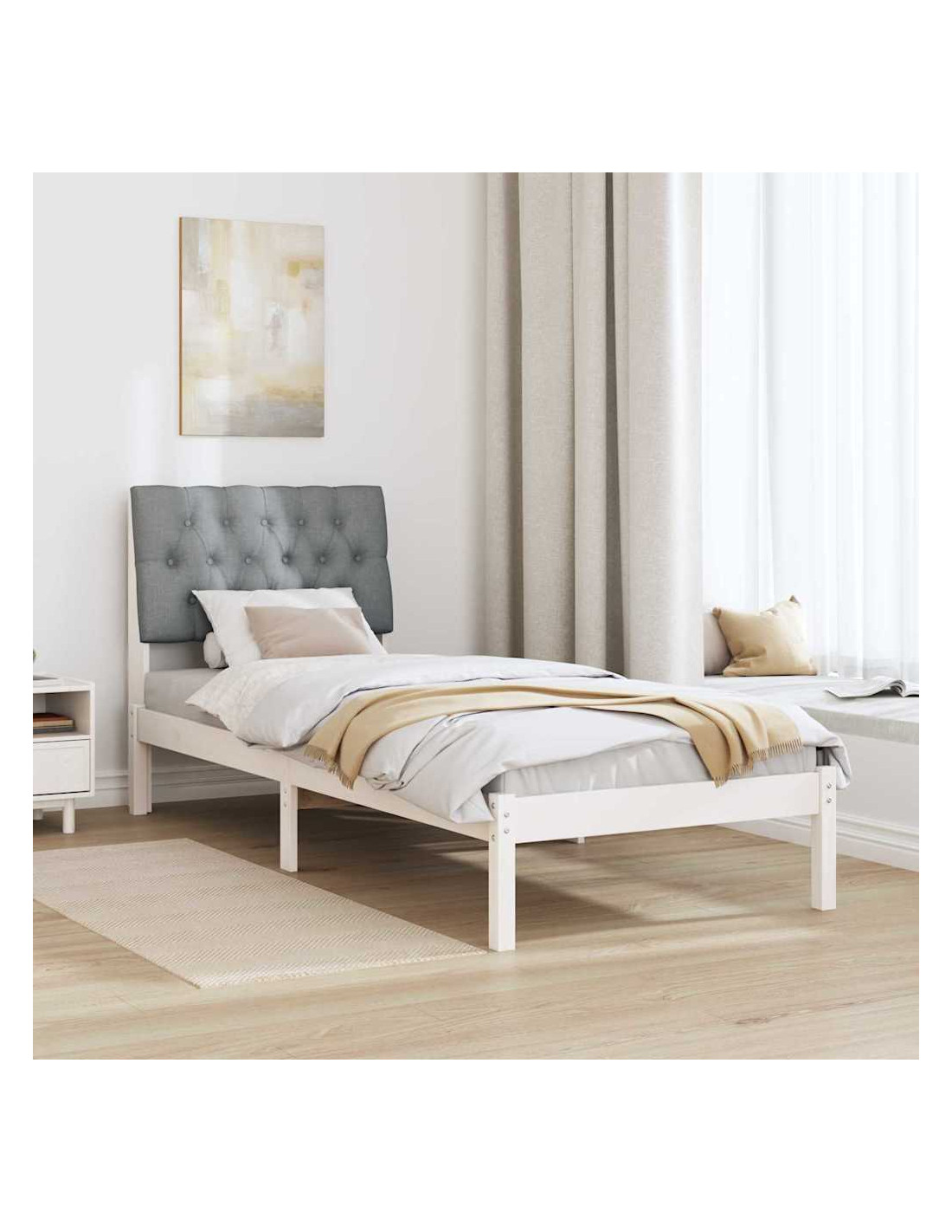 - Materiali e Finitura: La struttura letto è fatta in legno massello di pino, quindi è resistente e durevole. Ha una finitura verniciata che protegge e esalta la bellezza naturale del legno, rendendola elegante e versatile per tanti stili d'interni.