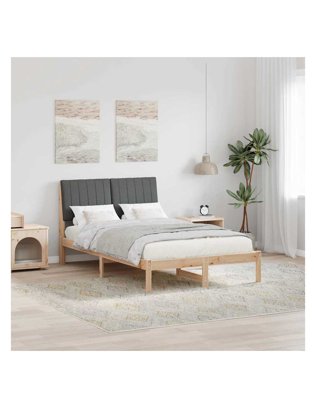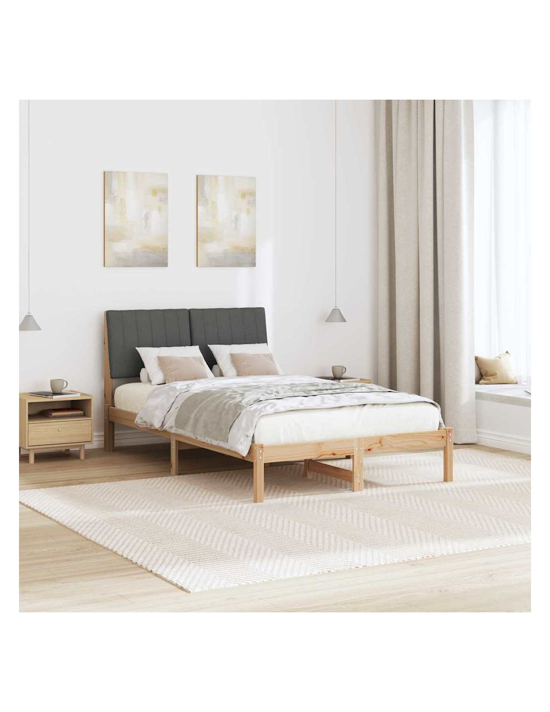 - Costruzione in legno massello di pino: La struttura è fatta in legno massello di pino, noto per la sua robustezza. Questo materiale durevole rende il letto stabile e sicuro, garantendo prestazioni affidabili. La venatura naturale offre un'estetica accogliente, rendendolo perfetto per le camere da letto.