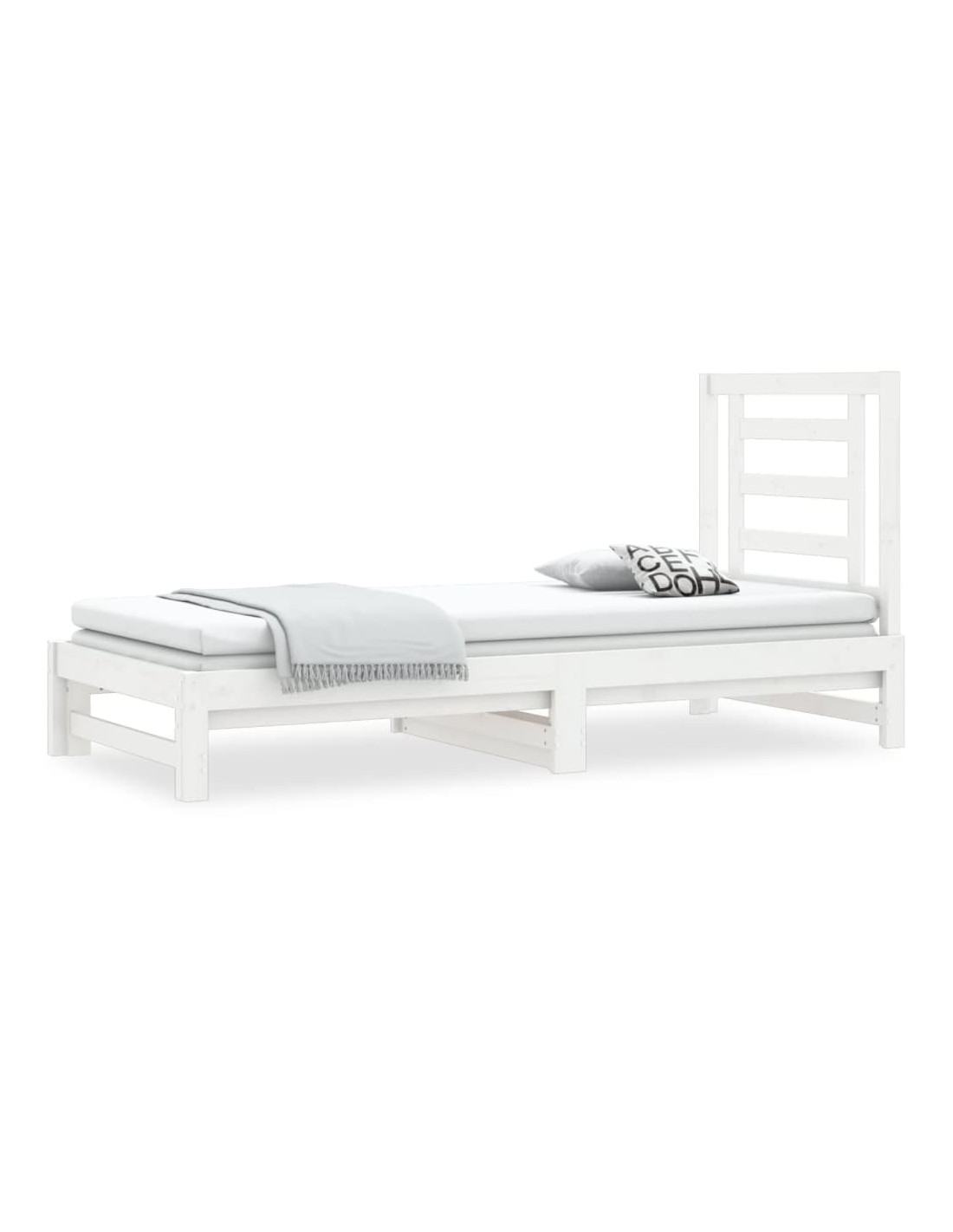 Questo versatile divano letto in legno può essere utilizzato come letto nella vostra camera da letto e si adatta perfettamente anche come divano nel soggiorno.