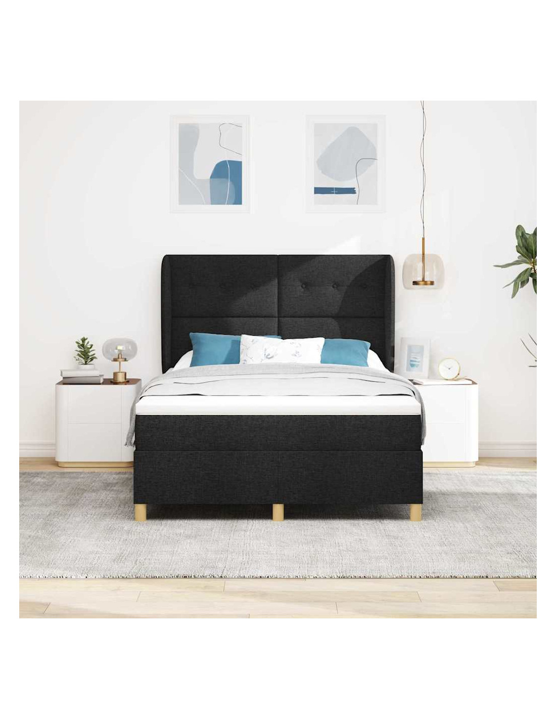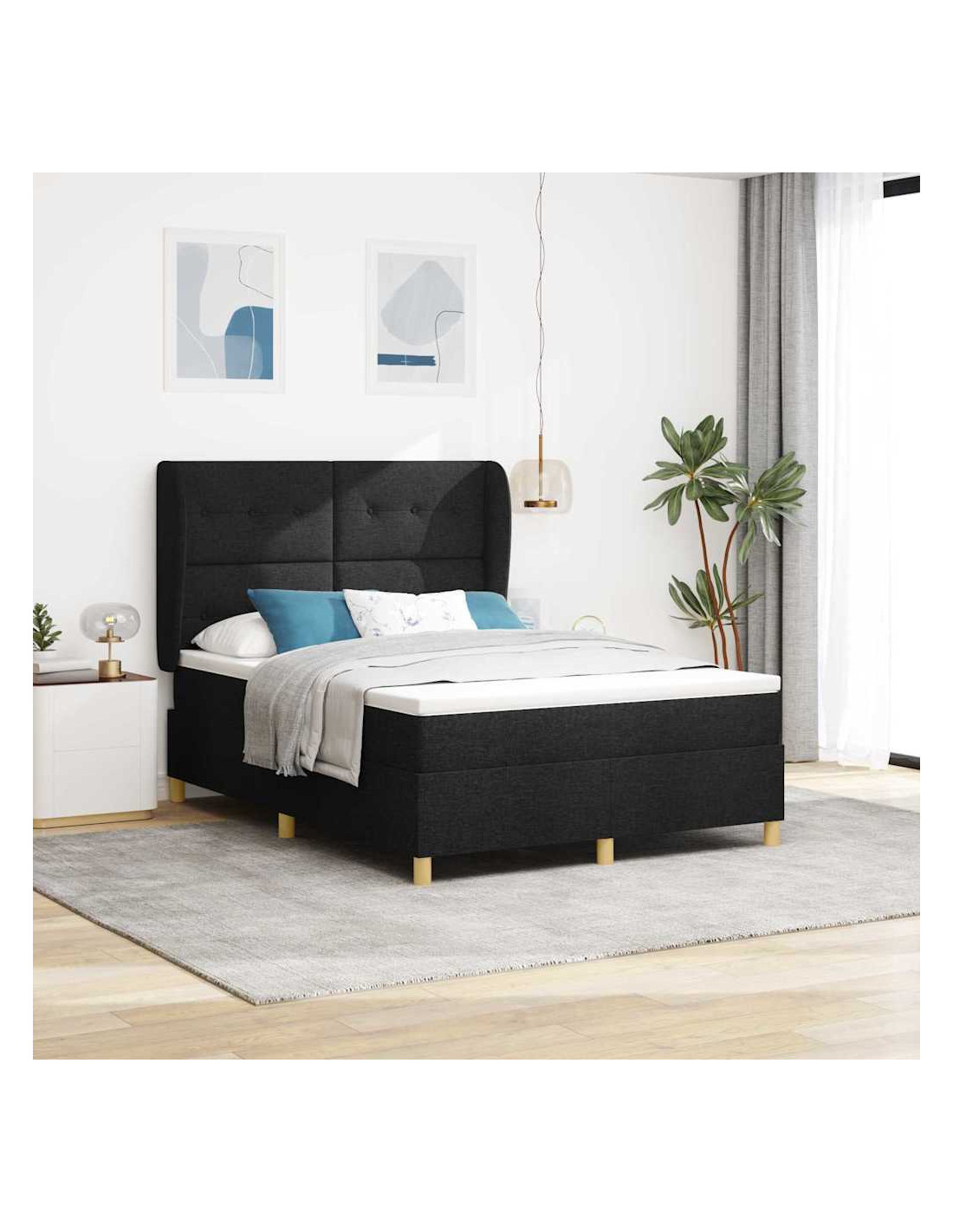 Il letto con molle e materasso in tessuto grigio scuro è dove lo stile moderno incontra la praticità. È un pezzo unico per qualsiasi camera da letto, con linee pulite e un look semplice. È un grande mix di comfort e robustezza, perfetto per tutti.