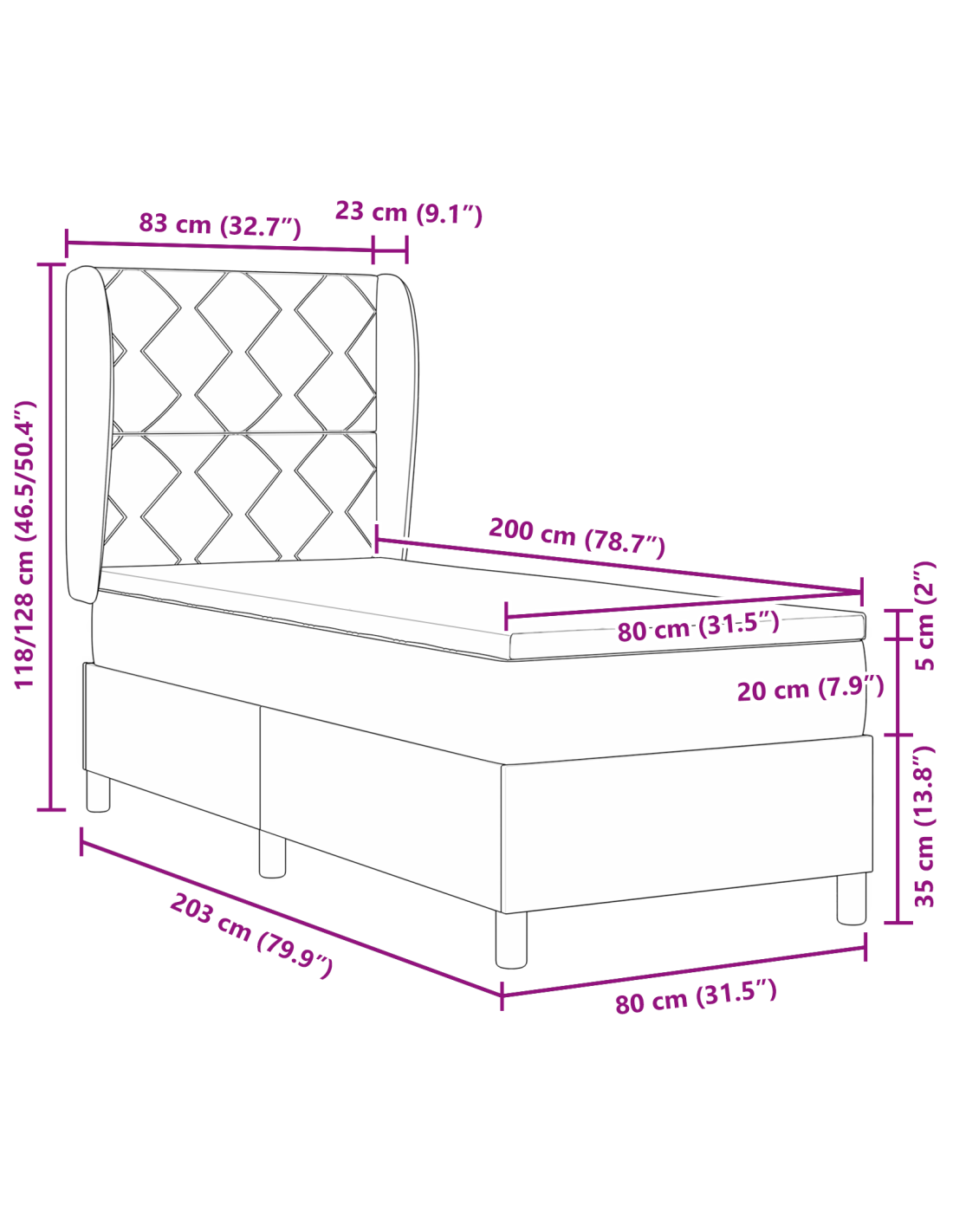- Dimensione materasso: Piccolo singolo (80 cm x 200 cm / 31" x 79")