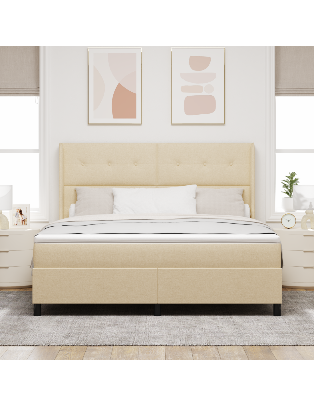 Questo letto box spring LED moderno porta stile e innovazione nella tua camera da letto. È progettato per migliorare il tuo sonno, mescolando bellezza e funzionalità. La combinazione di tessuto e legno crea un look contemporaneo perfetto per ogni design moderno. Ti dà comfort e un tocco di classe, garantendo notti di sonno tranquille e un bel punto focale nella tua stanza.
