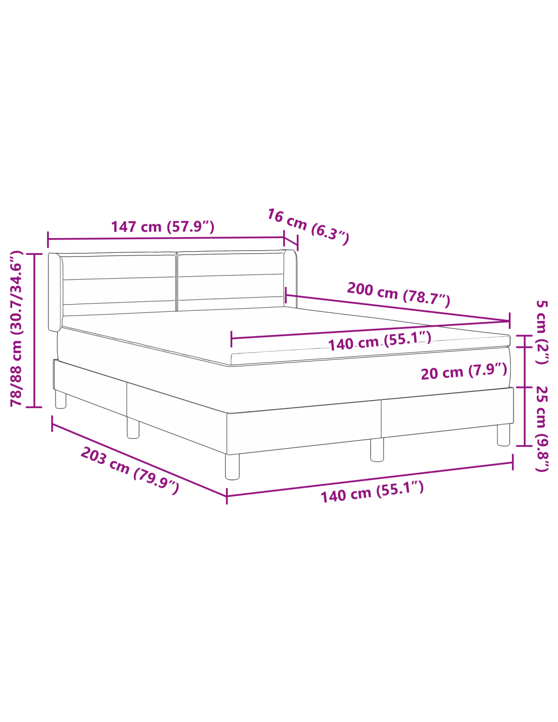 - Dimensione materasso: Matrimoniale (140 cm x 200 cm / 55" x 79")