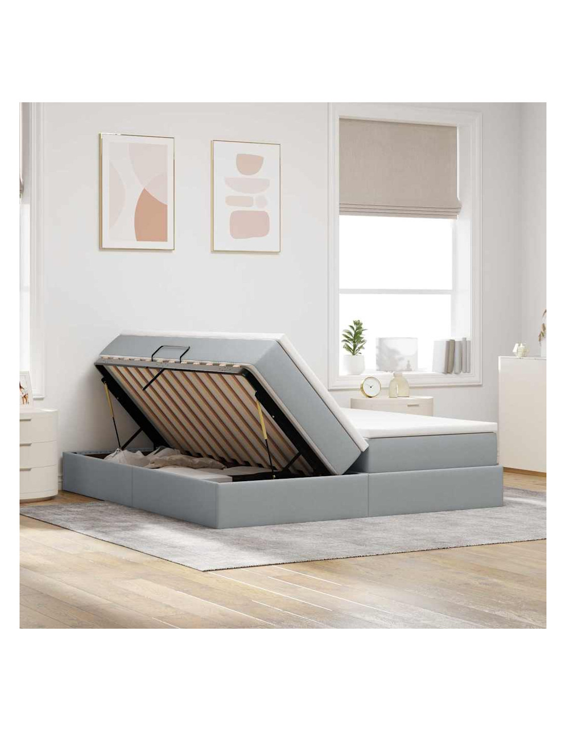 - Storage con sollevamento idraulico: Grazie al meccanismo di sollevamento laterale, accedere allo spazio di stoccaggio sotto il letto è semplice e senza fatica, con articoli essenziali sempre a portata di mano.