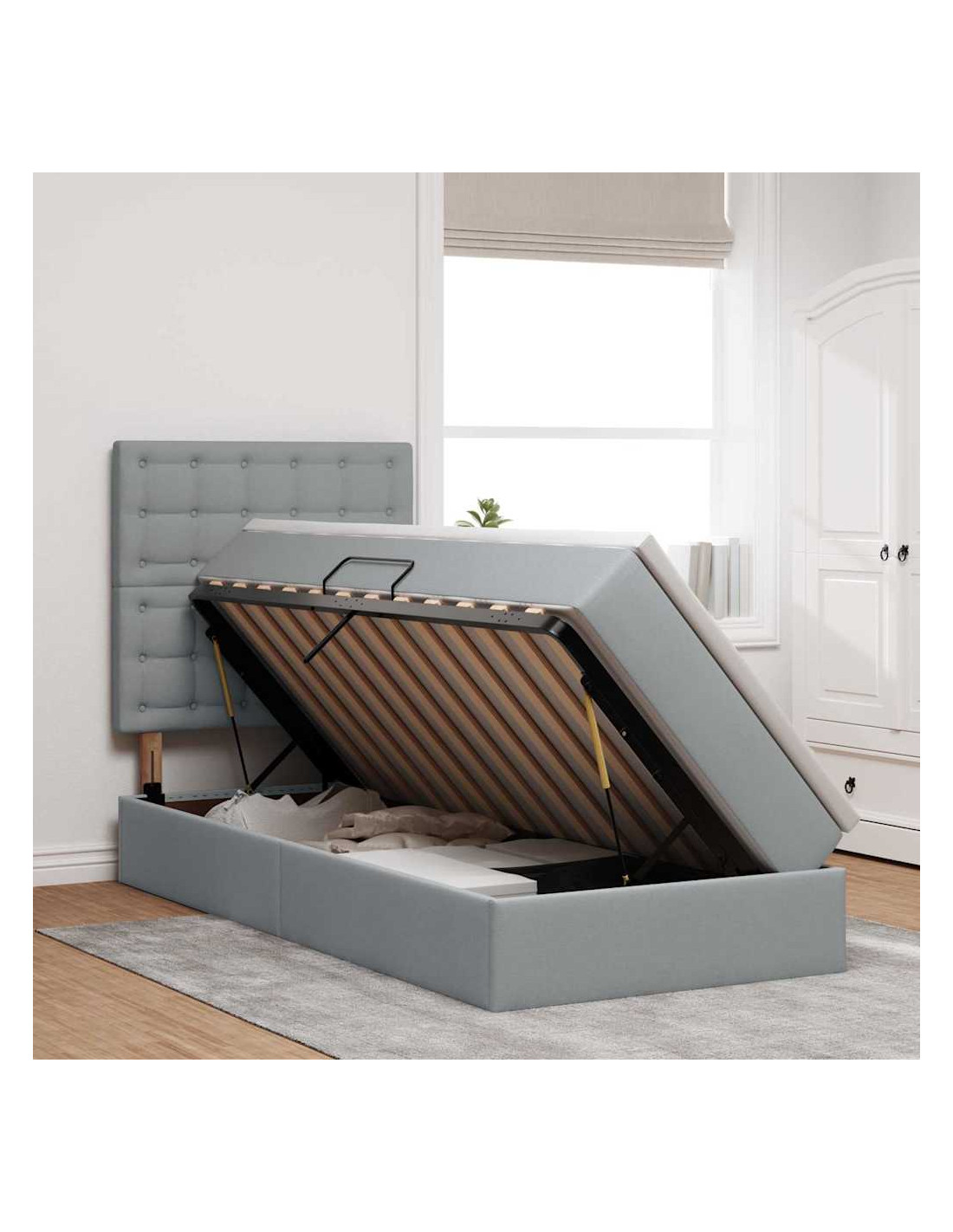 - Componenti Inclusi: Dotato di un meccanismo di sollevamento idraulico affidabile e un materasso di media rigidità, questo letto offre un accesso facile al vano contenitore e un buon supporto per il sonno.