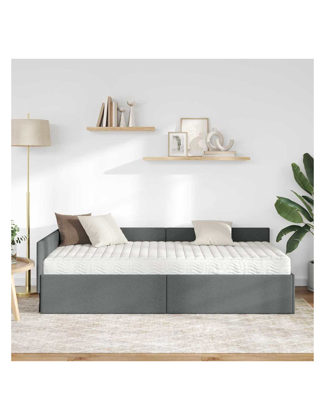 Questo letto angolare in tessuto con materasso è un mix di eleganza moderna e design pratico, perfetto per ogni camera da letto che vuole un tocco di stile. La piattaforma solida garantisce stabilità e bellezza, diventando il pezzo forte di un arredamento contemporaneo. La finitura vibrante e morbida si integra bene in ogni decorazione, offrendo un'esperienza visiva e tattile piacevole.