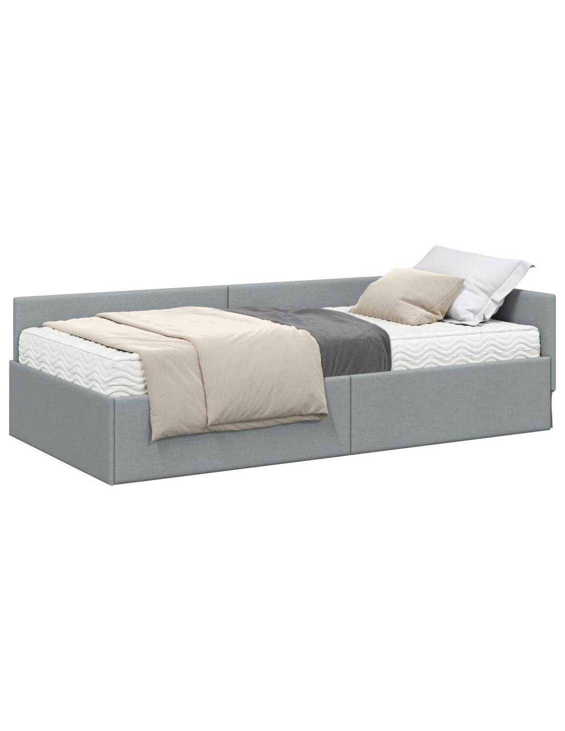 Questo letto angolare in tessuto con materasso è un mix di eleganza moderna e design pratico, perfetto per ogni camera da letto che vuole un tocco di stile. La piattaforma solida garantisce stabilità e bellezza, diventando il pezzo forte di un arredamento contemporaneo. La finitura vibrante e morbida si integra bene in ogni decorazione, offrendo un'esperienza visiva e tattile piacevole.