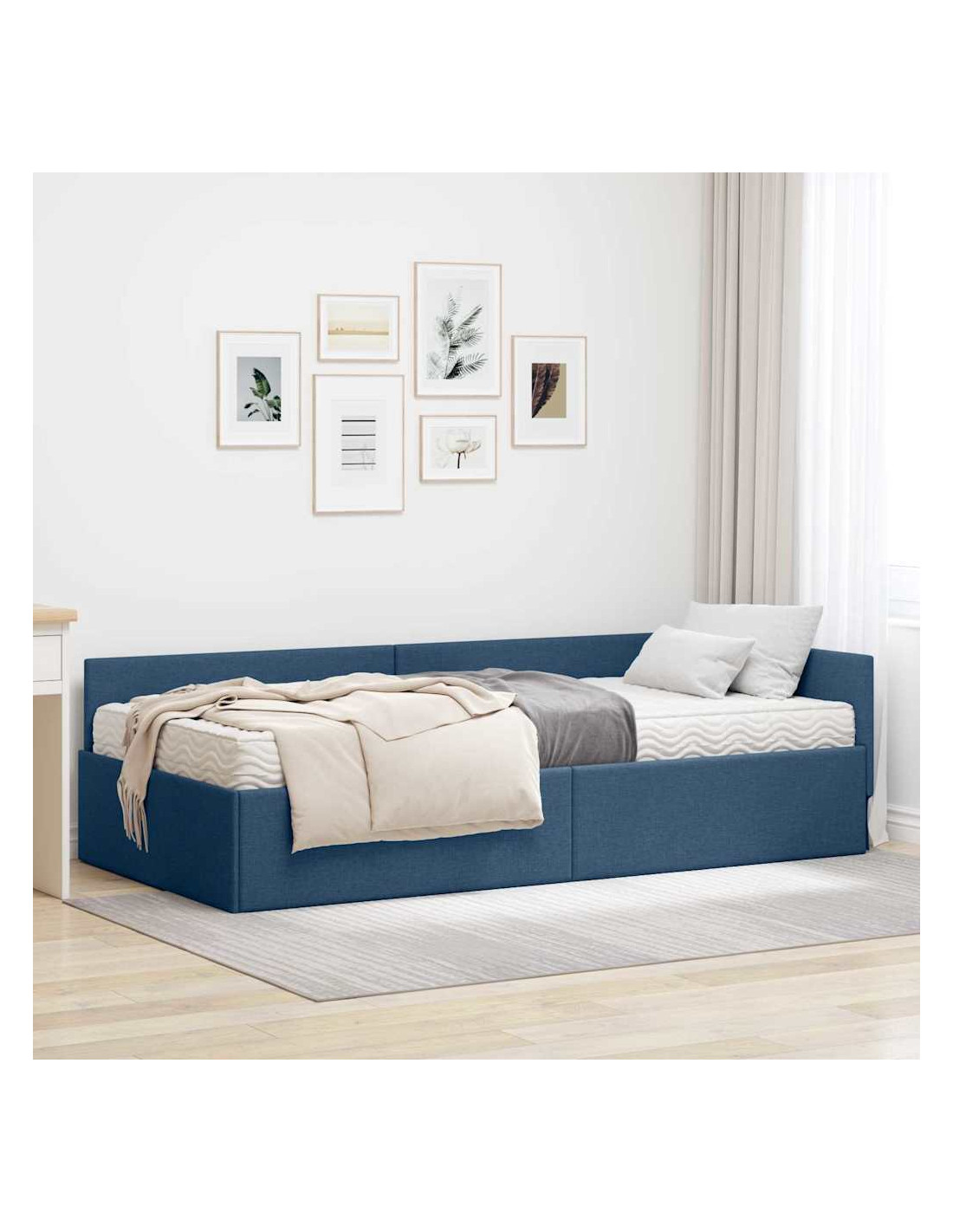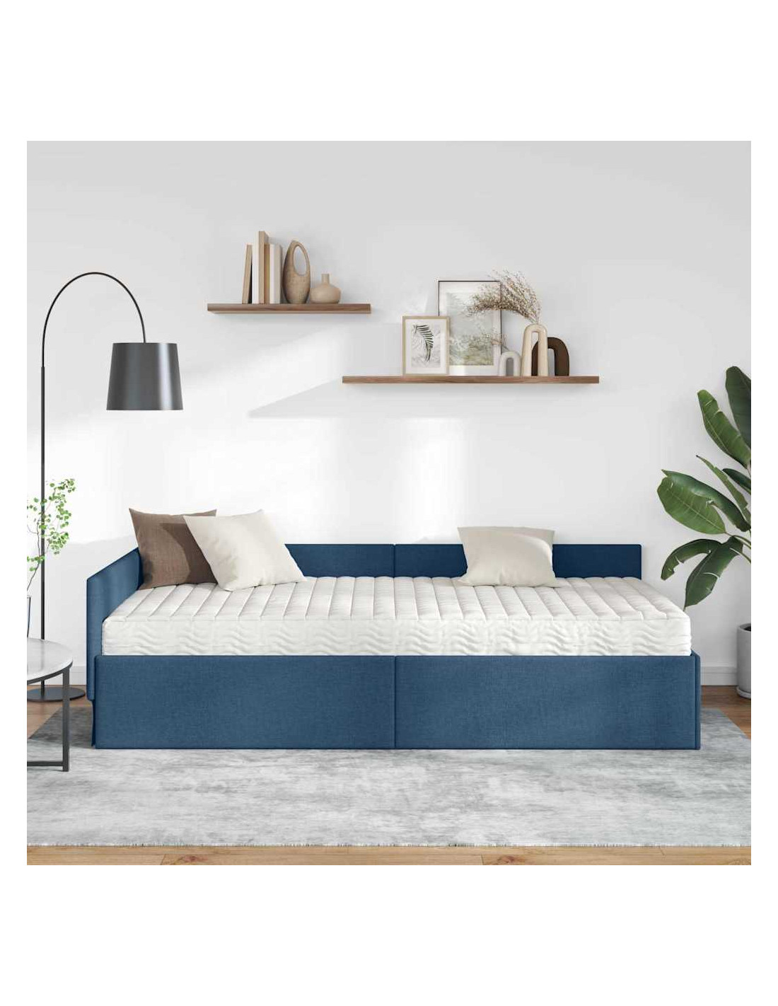 Questo letto angolare in tessuto con materasso è un mix di eleganza moderna e design pratico, perfetto per ogni camera da letto che vuole un tocco di stile. La piattaforma solida garantisce stabilità e bellezza, diventando il pezzo forte di un arredamento contemporaneo. La finitura vibrante e morbida si integra bene in ogni decorazione, offrendo un'esperienza visiva e tattile piacevole.