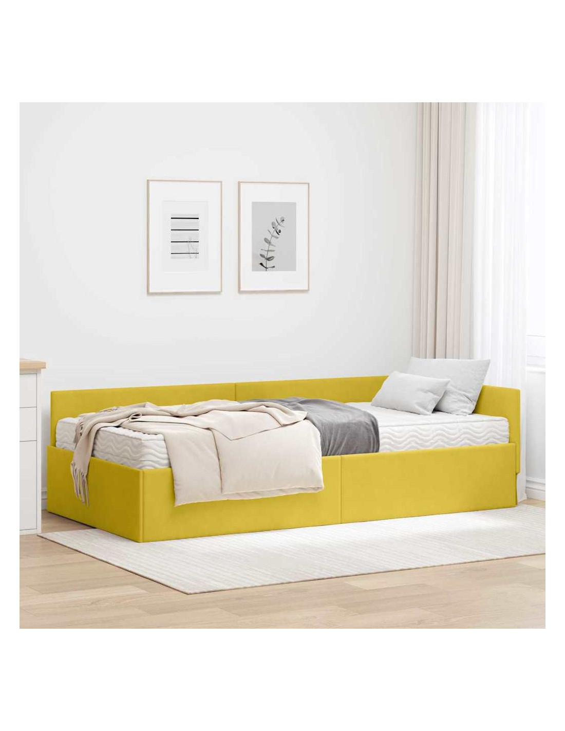 Il telaio letto ad angolo in velluto abbina perfettamente stile moderno e praticità. Con il suo design contemporaneo e compatto, è l'ideale per ogni stanza da letto, integrandosi facilmente con l'arredamento attuale. La sensazione lussuosa del velluto non solo arricchisce l'ambiente, ma assicura anche notti di sonno piacevoli. Il suo look sofisticato è completato da una struttura solida e una base confortevole, regalando un mix equilibrato di stile e supporto per chi dorme.