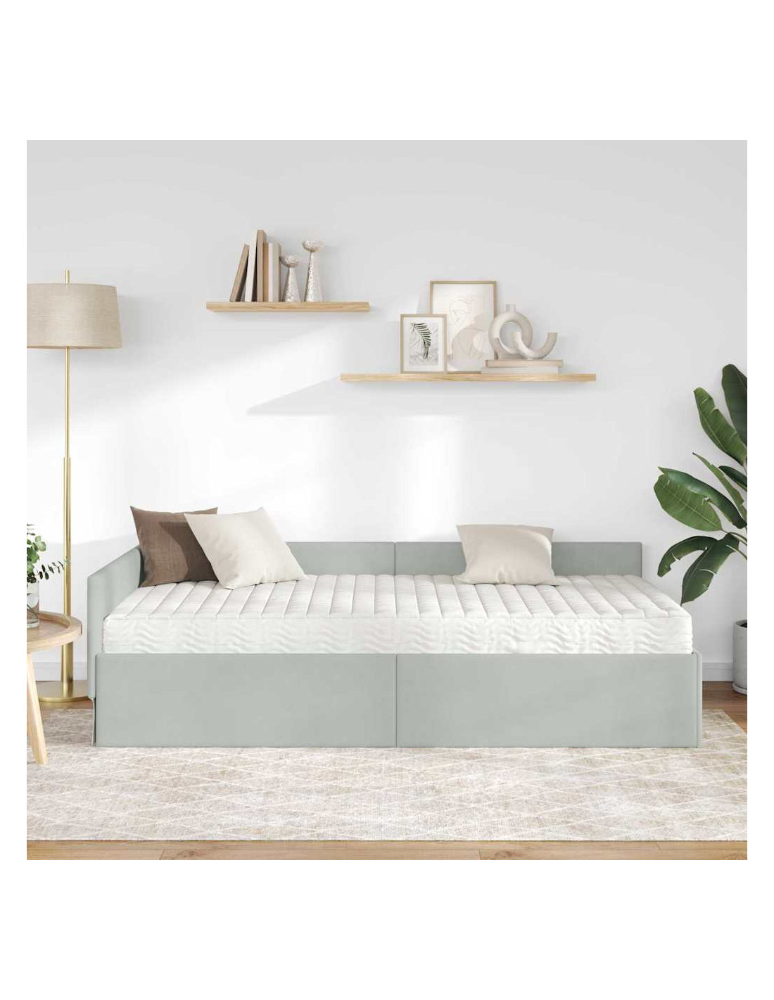 Il telaio letto ad angolo in velluto abbina perfettamente stile moderno e praticità. Con il suo design contemporaneo e compatto, è l'ideale per ogni stanza da letto, integrandosi facilmente con l'arredamento attuale. La sensazione lussuosa del velluto non solo arricchisce l'ambiente, ma assicura anche notti di sonno piacevoli. Il suo look sofisticato è completato da una struttura solida e una base confortevole, regalando un mix equilibrato di stile e supporto per chi dorme.