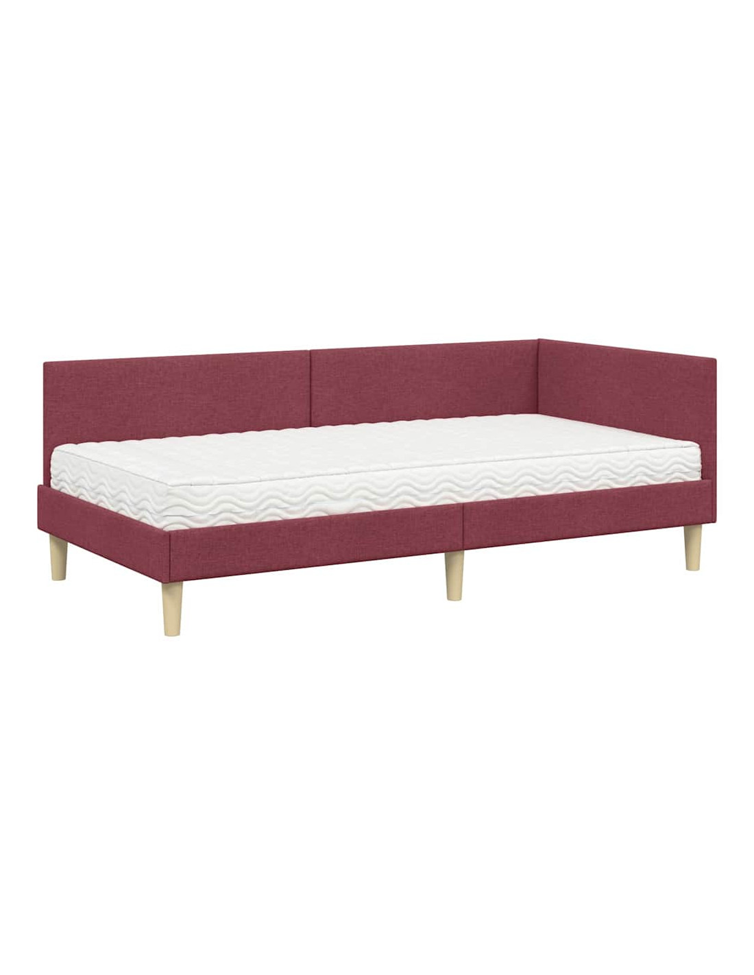 Questo letto ad angolo con materasso combina stile moderno e comfort, rendendolo un elemento centrale per ogni camera da letto. La testiera in tessuto è fissata al muro, offrendo un look ordinato e spazioso, mentre il telaio con tocchi minimalisti crea un'atmosfera serena.