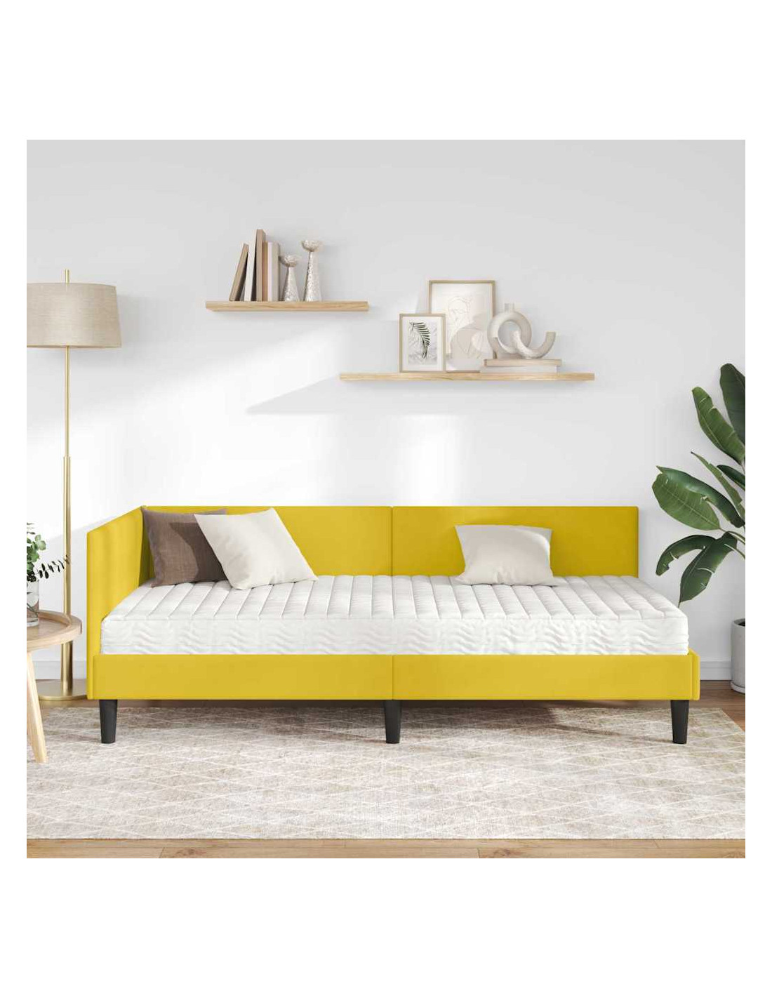 Questo letto ad angolo in velluto con materasso è tutto stile per le camere moderne. Il design a piattaforma rettangolare si integra perfettamente in qualsiasi disposizione della camera, creando un centro elegante che emana sofisticazione con la sua texture vellutata. Perfetto per chi cerca sia forma che funzione, questo letto offre comfort ed estetica che piaceranno a chiunque.